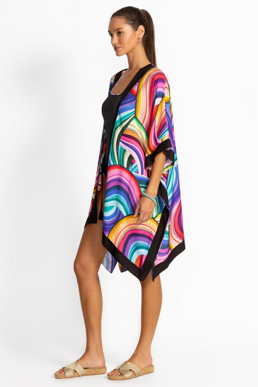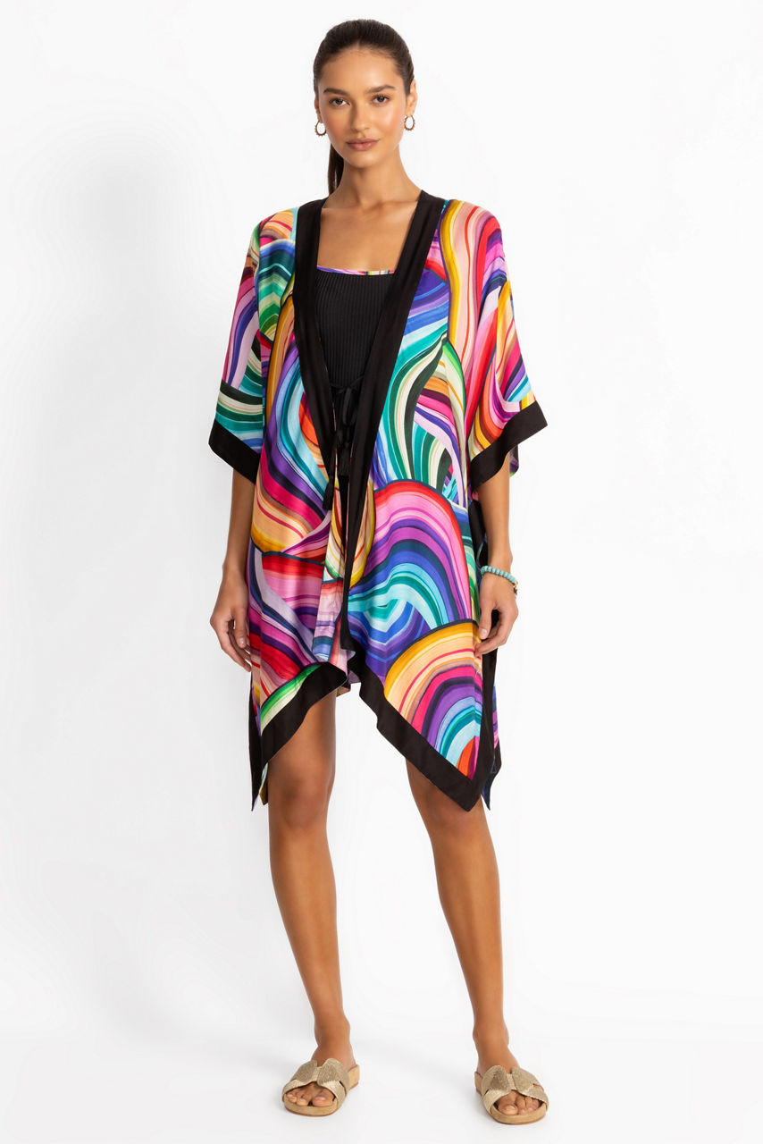 Make a statement by the shore with the Abel Short Kimono, featuring a bold pattern that captures the energy of the ocean. Lightweight and effortlessly chic, this beach-ready layer adds a vibrant touch to any swimwear look.
