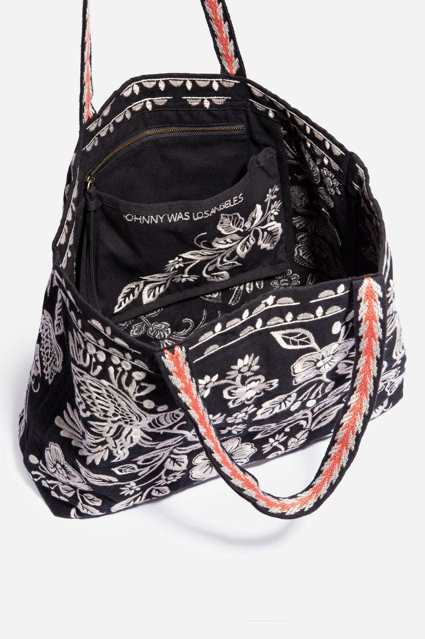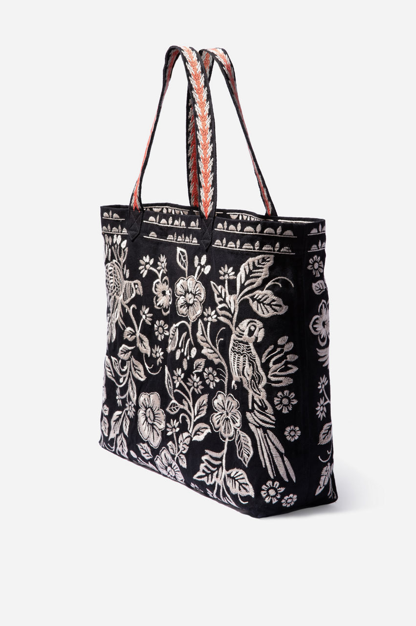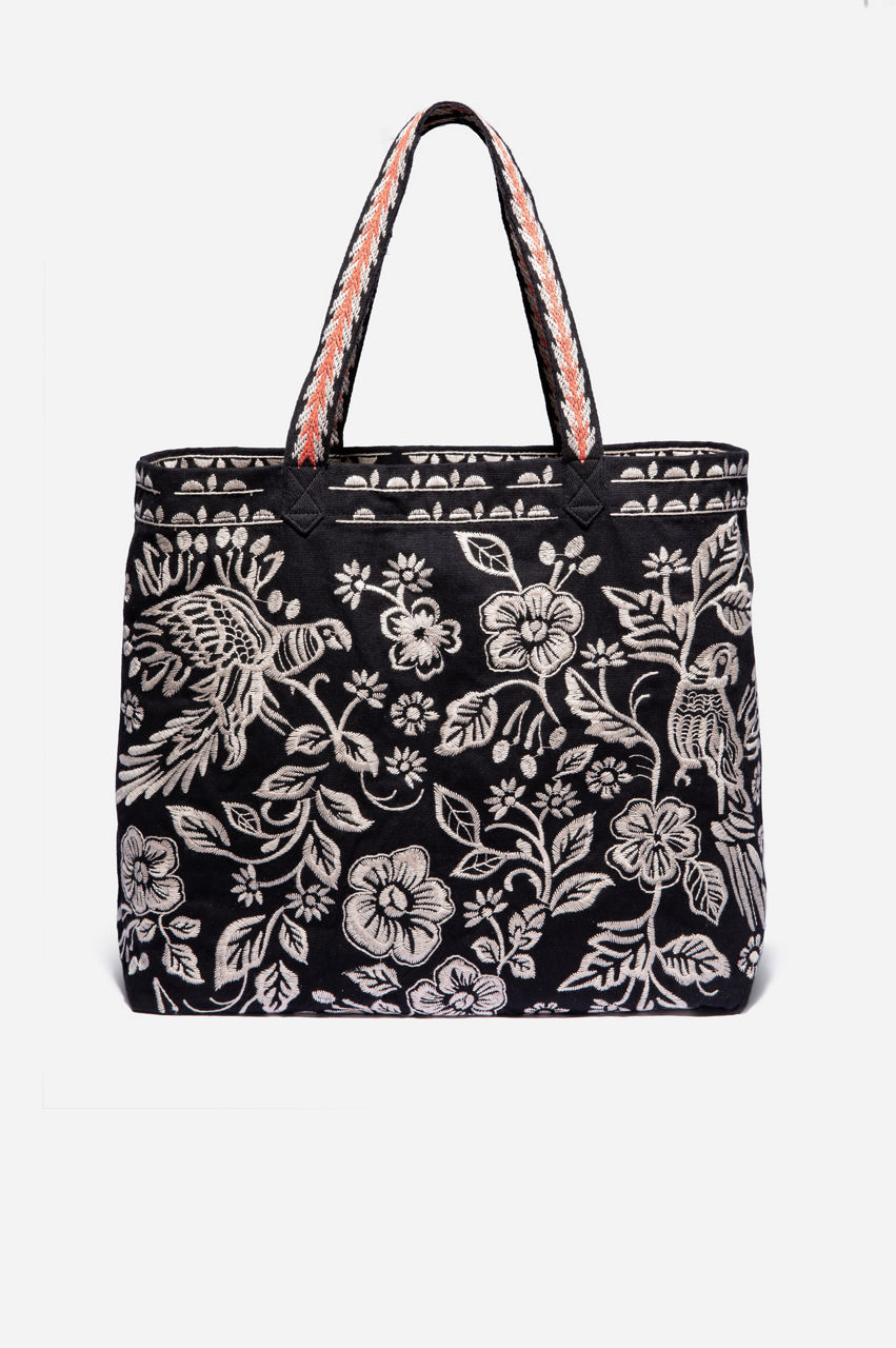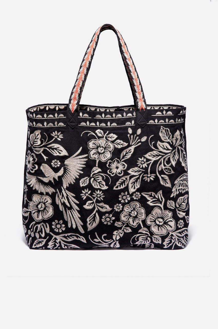 Look fresh around town when you carry the Abigail Everyday Tote. This gorgeous tote bag fits all your boho needs for a fashionable day or night out. Available in black linen, our 100% cotton tote bag is embroidered with a lovely lilac flower design. It's a great match to complement your favorite shades. Fun to carry, easy to wash, you'll look great with the Abigail Everyday Tote.