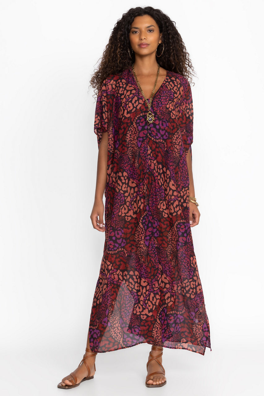 Thoughtfully crafted from a rich blend of silk and cotton, the Afeni Maxi Kaftan adds a hint of drama to your vacation wardrobe. Featuring a V-neckline and relaxed dolman sleeves, this maxi-length kaftan offers a button-front closure and flowing skirt. Layer over your favorite swimwear and pair with sandals and a wide-brim sun hat for an afternoon lounging by the pool.