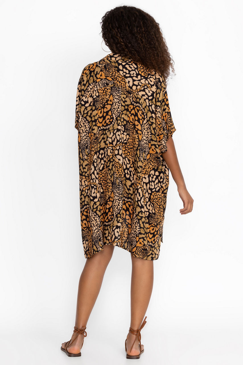 Crafted from a lightweight, flowing fabric, the Afeni Oversized Button Down Shirt is adorned with a vibrant eye-catching animal print. Featuring a collared button-front and dolman sleeves, this relaxed-fit shirt is finished with side seam slits. Layer over the Afeni Ruched One Piece and pair with wedge sandals for a perfectly coordinated poolside look.