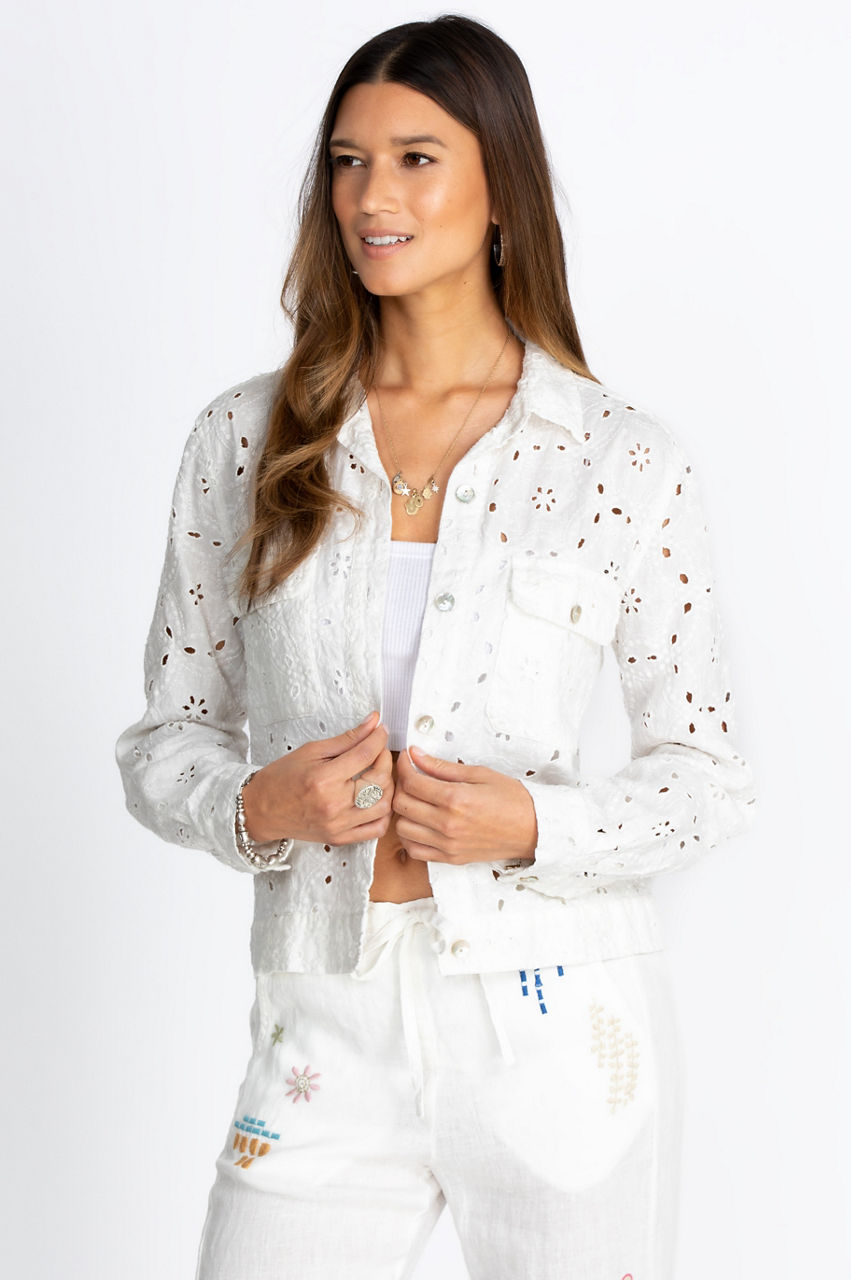 Our Alanah Cropped Jacket is as comfortable as it is stylish. With its gorgeous artisan display and striking color story, you ll add a playful pop to a fun boho ensemble. Pull together the perfect outfit by adding your favorite denim and a silk camisole. Top off the ensemble with some chic boho booties and bold jewelry.