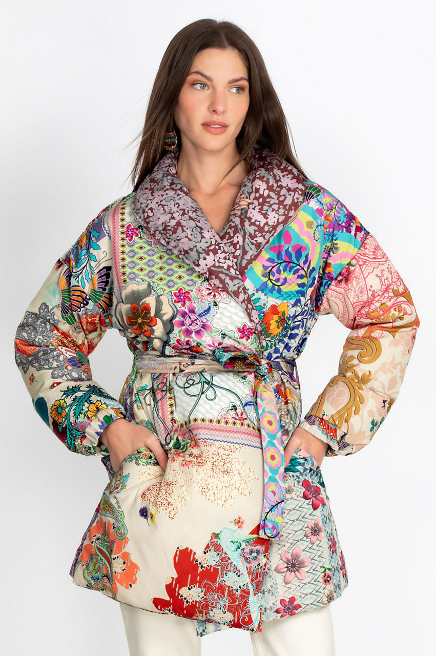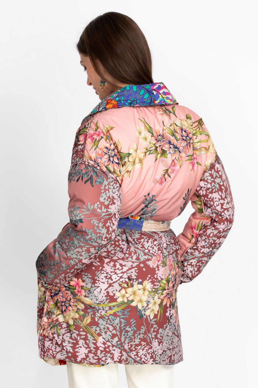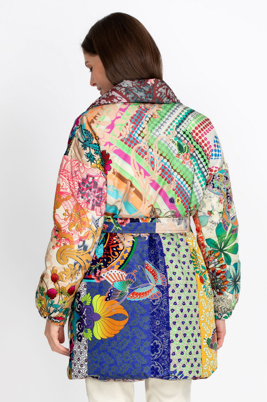 Stay warm and stylish with the Alyssa Down Puffer and its bolt vintage print. This reversible puffer coat features a belt and an elegant shawl lapel for a boho-chic look. Wear this versatile coat over all your favorite outfits, whether you re wearing a pair of jeans for a night out with friends or a flowy top with some embroidered leggings for a special occasion.