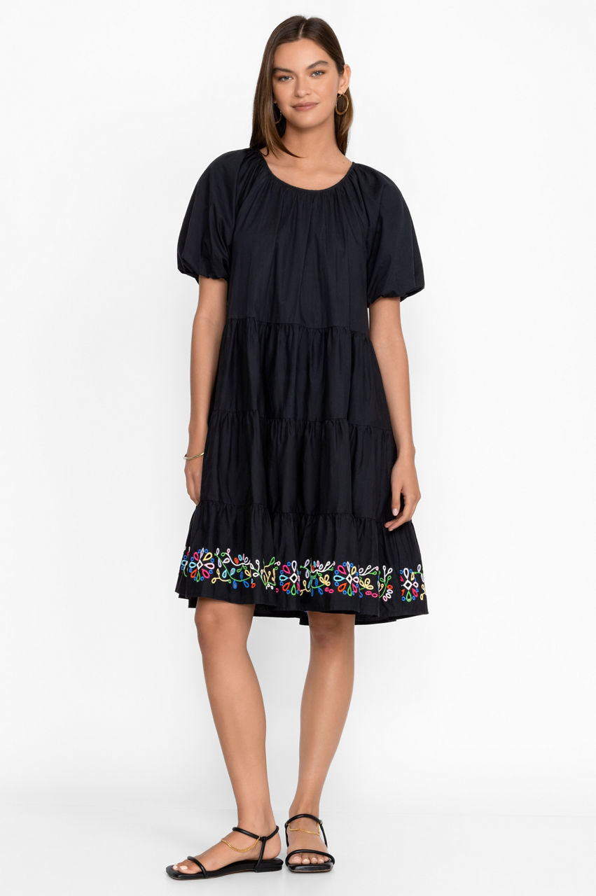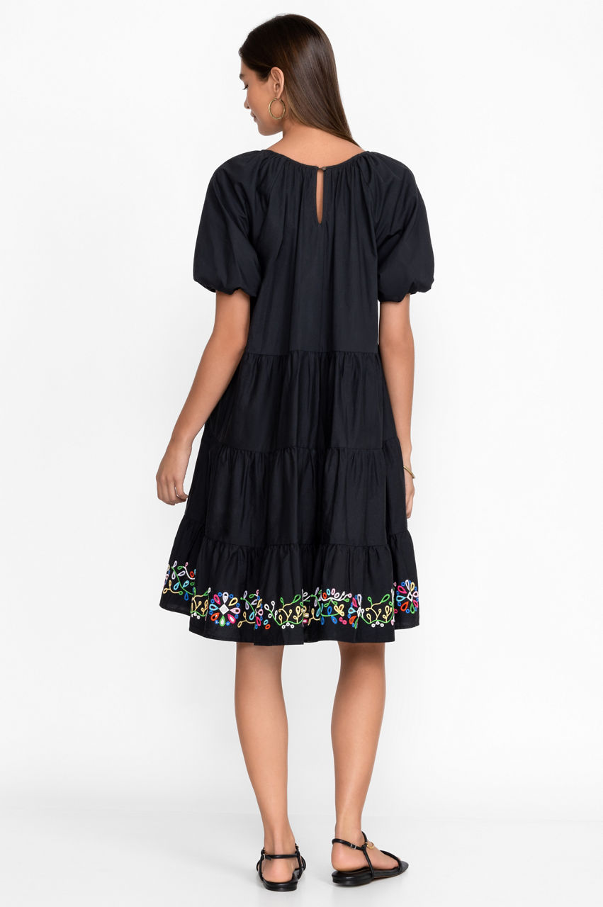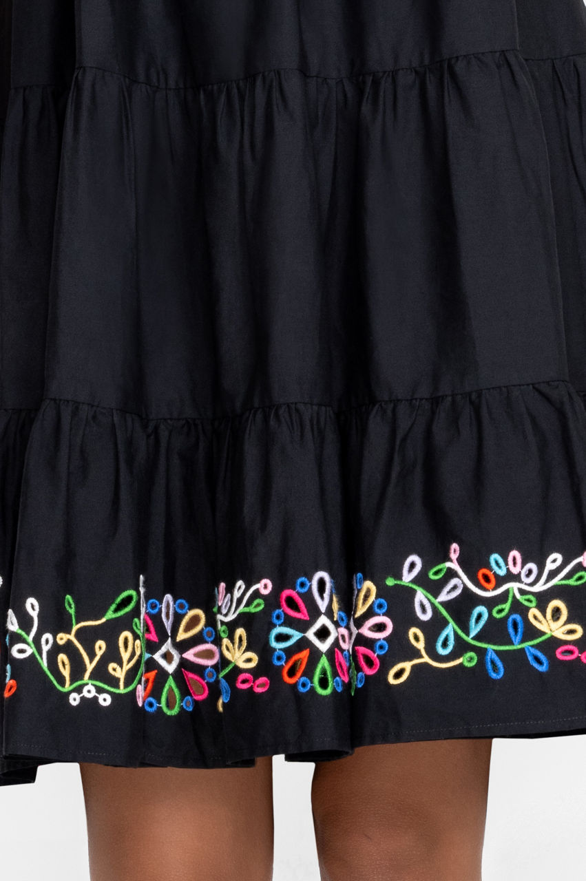 The Amanza Eyelet Mini Dress is the perfect pick for relaxed wanders through verdant landscapes and quaint coastal towns. A versatile piece for sun-drenched weather, this dress is crafted from pure cotton and boasts a round neck, short elastic sleeves, a tiered construction, and a subtle floral placement embroidery. Pair with woven accessories and leather sandals for an effortlessly chic daytime look.
