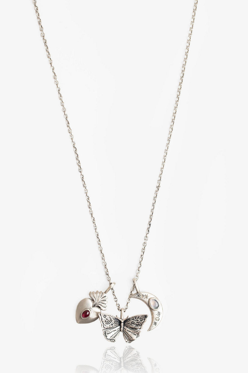 Our statement-making Amulet Charm Necklace features a luxe color story and gorgeous charms. The perfect finishing touch for any outfit pair this classic piece with simple denim and a silk cami for an updated boho look.