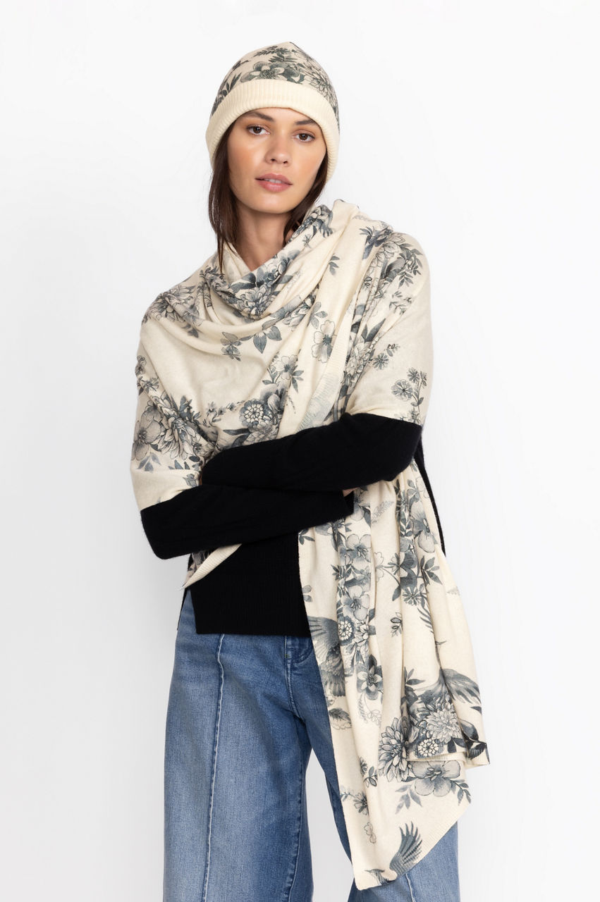 Infusing a touch of whimsy into your cold-weather outfit, the Anahi Printed Scarf not only provides warmth but also exudes playful charm. Meticulously crafted from a luxurious blend of cashmere and wool, this cozy scarf boasts an eye-catching floral print, making it a timeless and elegant accessory. For a chic winter ensemble, pair it with the Anahi Printed Beanie to create a stylish and harmonious duo.