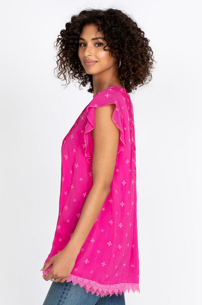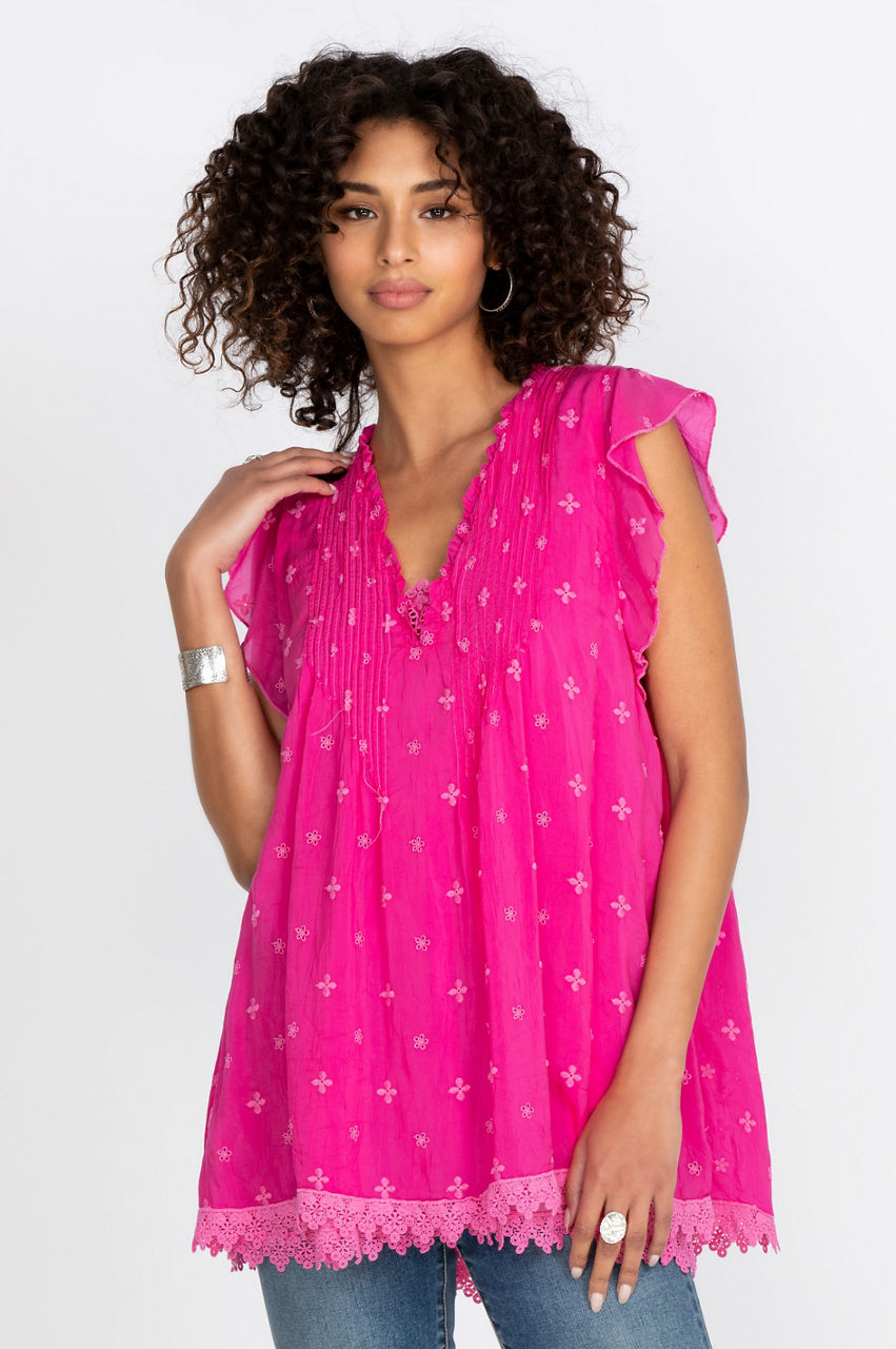 From its cap sleeves to delicate hem cutouts, the Anthena Tunic features a number of details that will elevate your outfit. The discreet A-line cut will create a flattering silhouette while the embellished V-neck will draw attention to a pendant or necklace. You can create a relaxed look by pairing this stylish tunic with a distressed jean jacket.