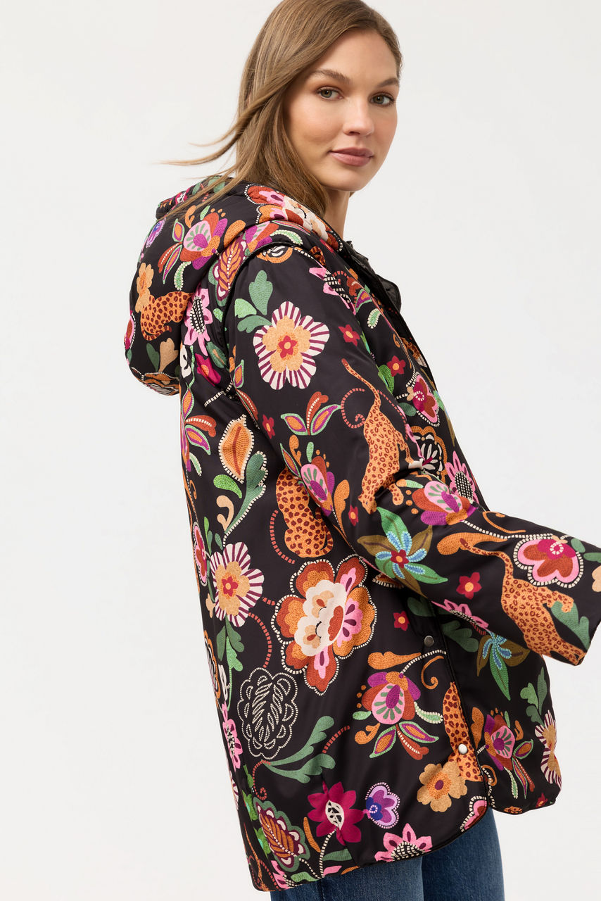 Thoughtfully designed with the cooler seasons in mind, the Arches Quilted Puffer Jacket is a generously plush outer layer. Crafted in a classic puffer style, this jacket features a snap front and a bungee hood closure and is finished with a vibrant floral lining for a splash of color. Layer over a classic black dress and pair with bold heels for a modern evening look.