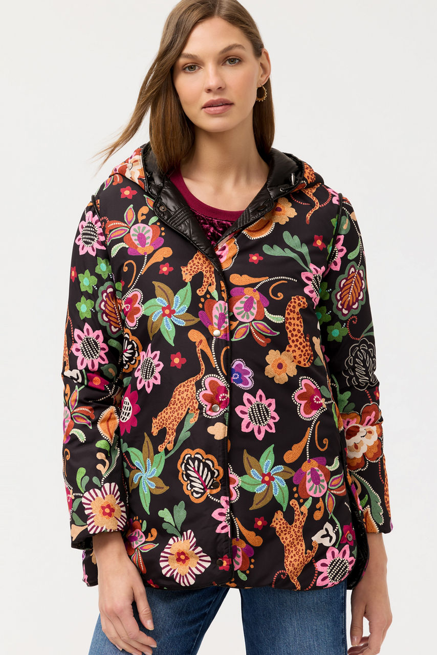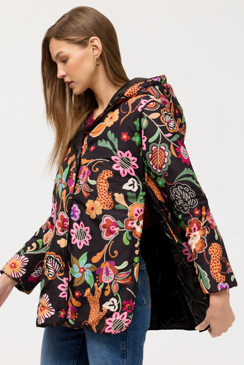 Thoughtfully designed with the cooler seasons in mind, the Arches Quilted Puffer Jacket is a generously plush outer layer. Crafted in a classic puffer style, this jacket features a snap front and a bungee hood closure and is finished with a vibrant floral lining for a splash of color. Layer over a classic black dress and pair with bold heels for a modern evening look.