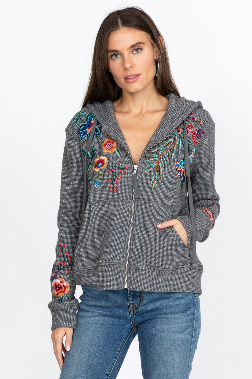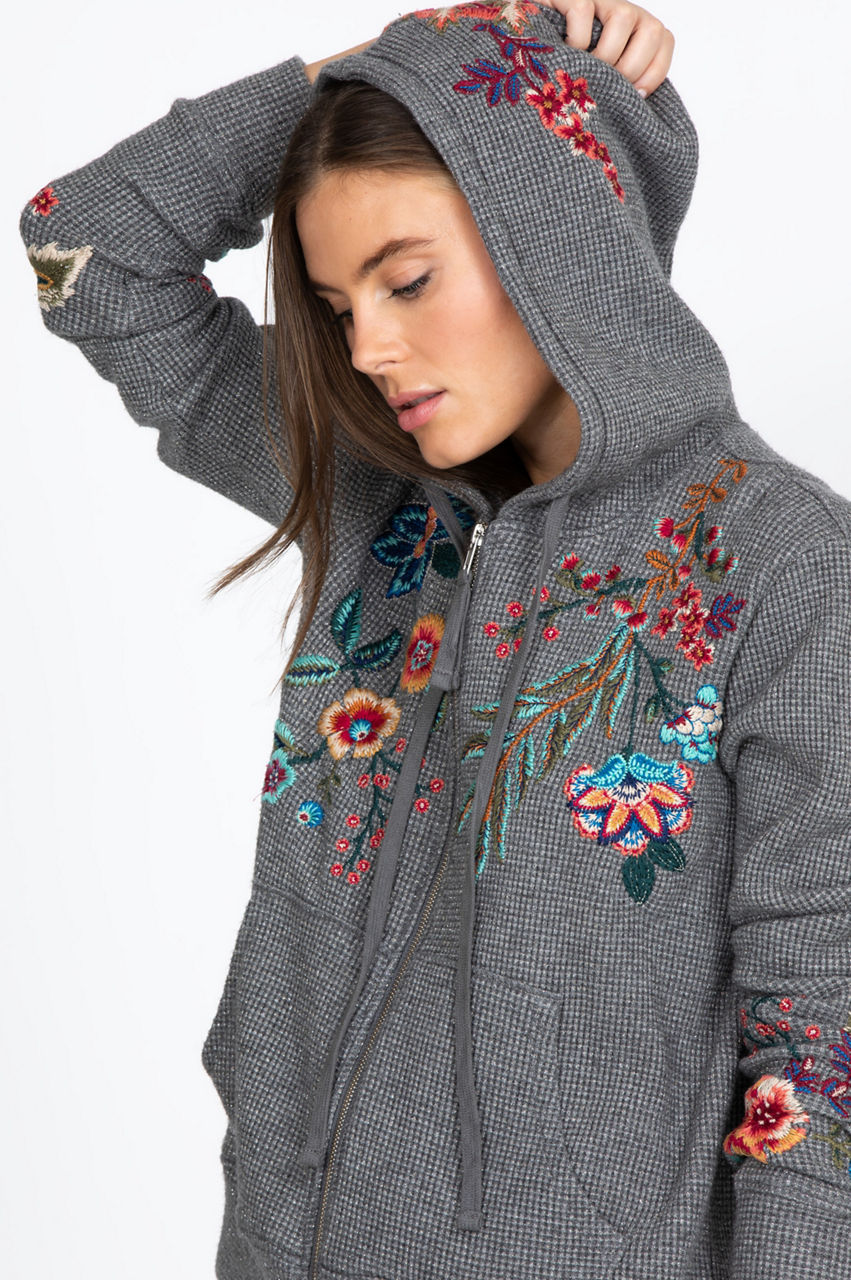Spice up the cool weather wardrobe with the Ardell Metallic Thermal Hoodie. Its comfortable fit and nature-themed print add style and comfort to any outfit. This hoodie features a hood with a drawstring, front zipper, and pockets for a classic active look. Pair it with your favorite jeans and t-shirt for a warm, casual, yet put-together outfit.