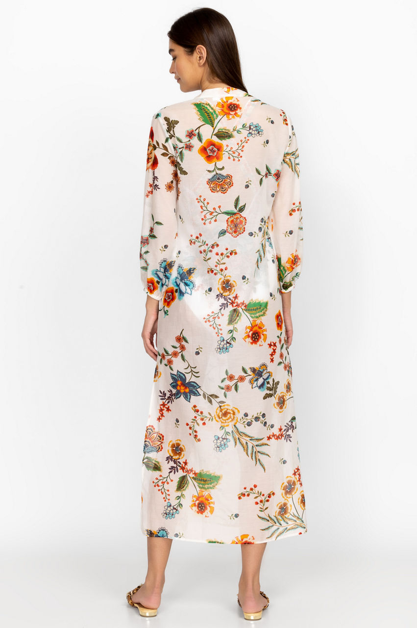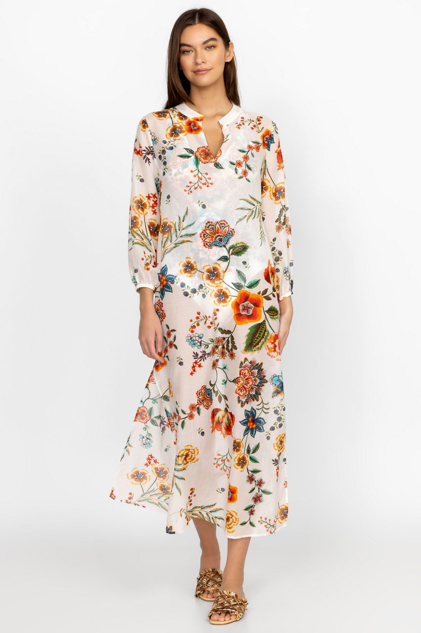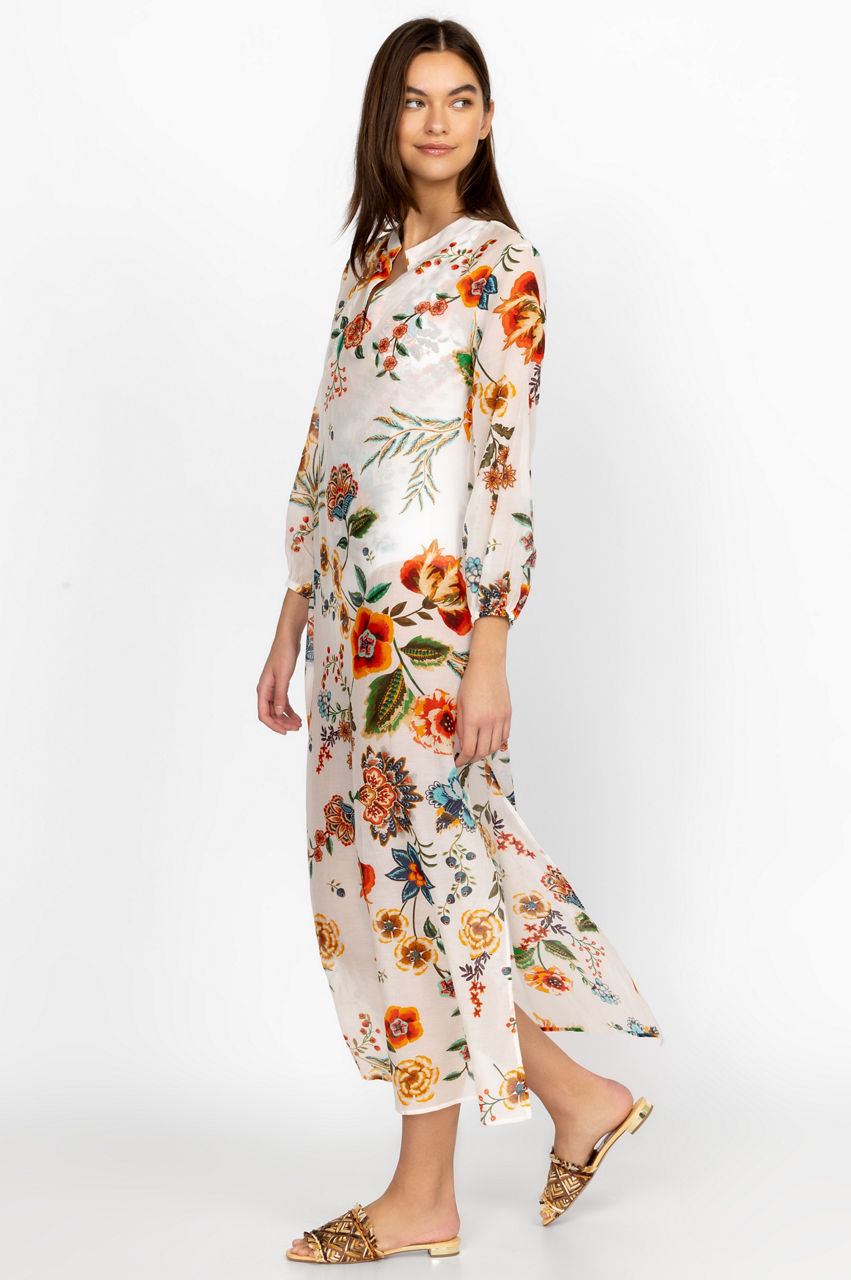 Made from a soft cotton silk blend, the Puff Sleeve Maxi Dress is a statement-making addition to every vacation repertoire. Falling to a maxi length, this dress features a round neck, long puff sleeves with elastic sleeve cuffs, an abundance of romantic blooms, and side slits at the hem for relaxed movement. Pair with sandals for a stylish day-to-night look.