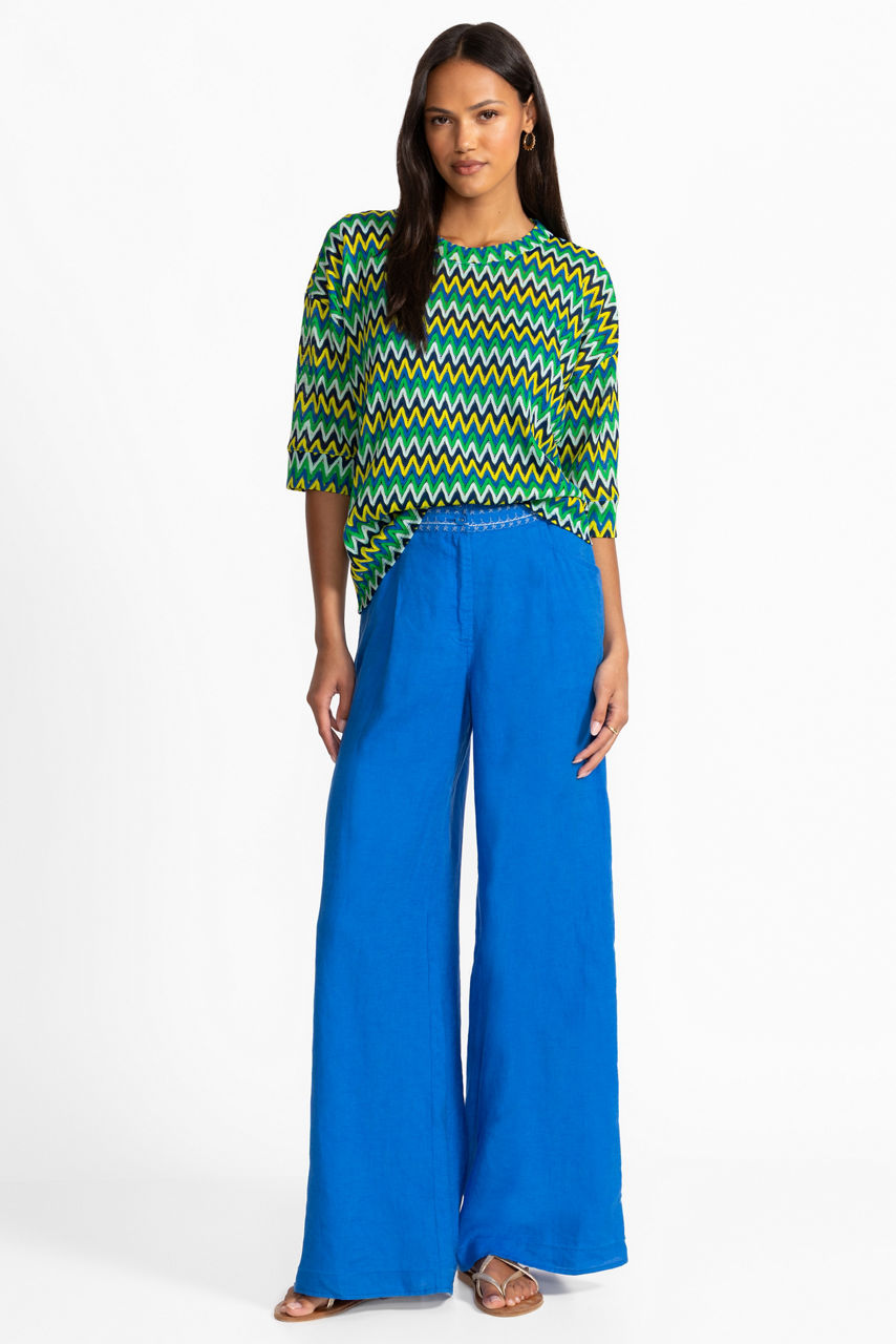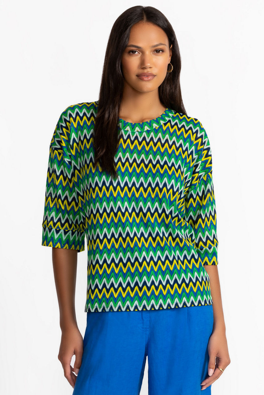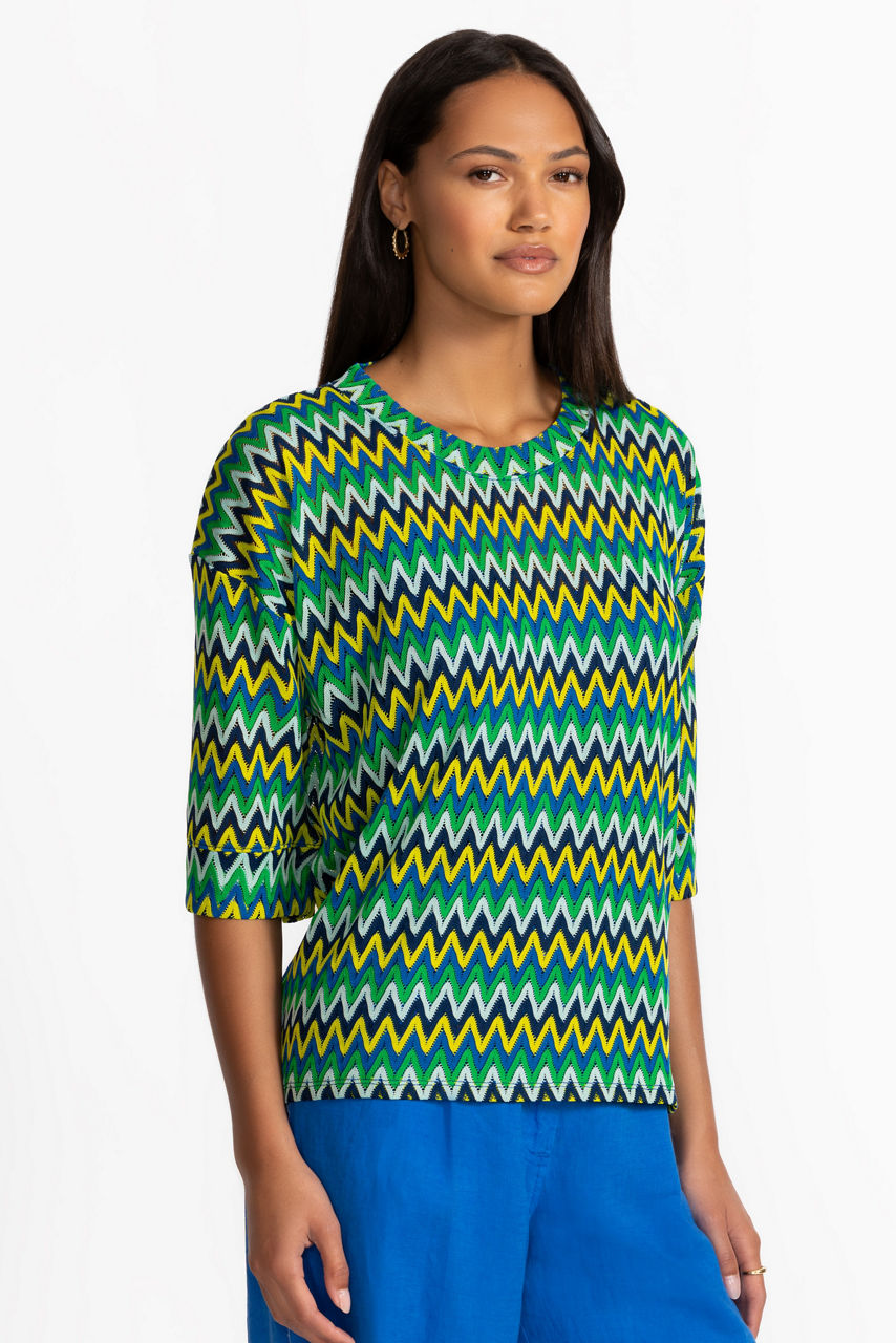 Beautifully adorned with a bold knit pattern in rich colors, the Arden Oversized Blouse is a casual staple with elevated style. Featuring a rounded neckline and dropped shoulders, this cami-lined short sleeve blouse offers a relaxed fit and a swing hemline. Pair with wide-leg high-waisted jeans and fashion sneakers for a fresh weekend look.