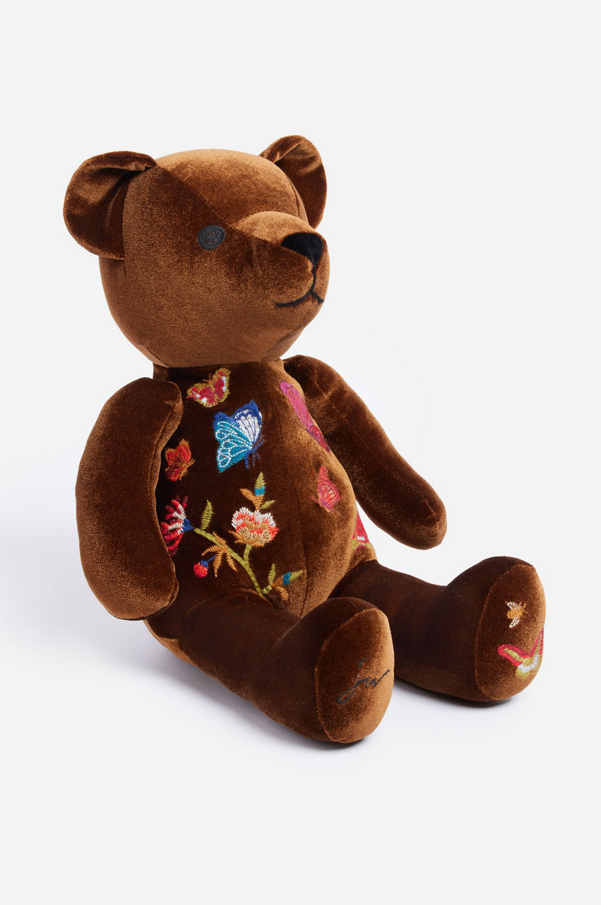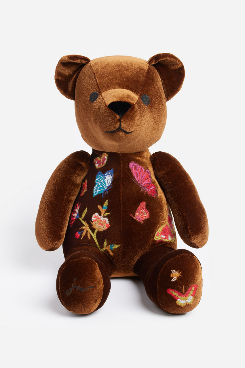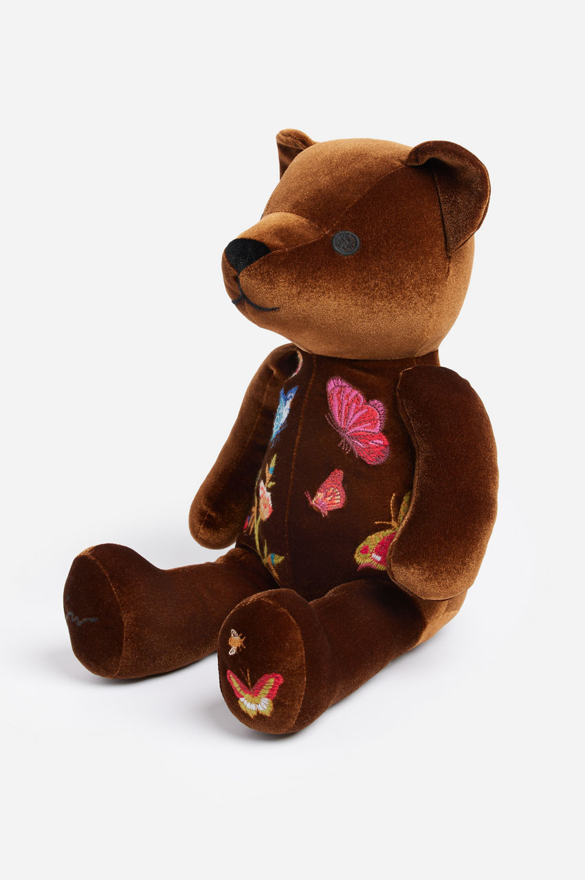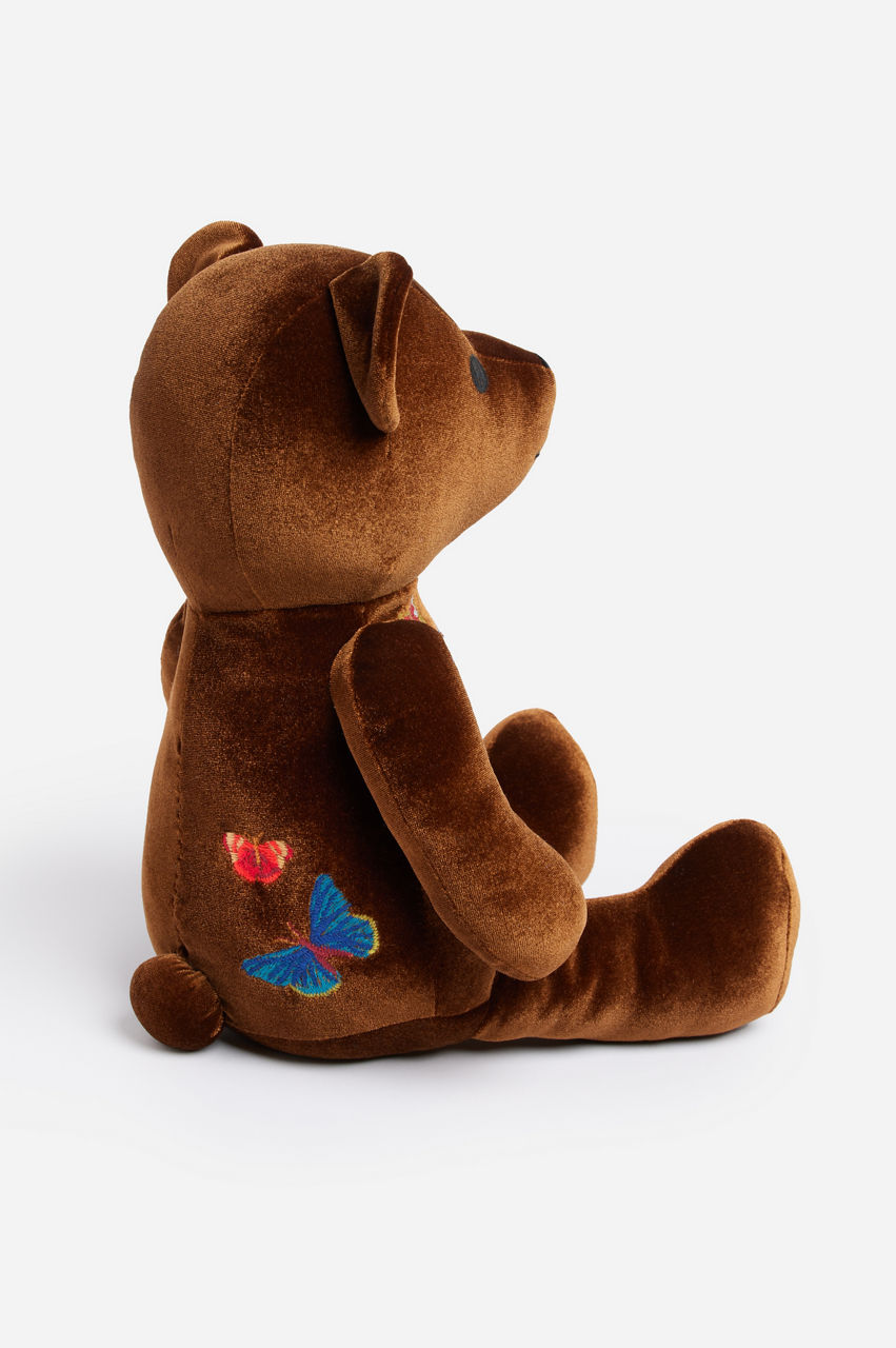 Infusing your home decor with a touch of enchantment, the Aria Bear is a delightful adornment that exudes fanciful charm. Artfully embroidered on plush poly velvet, this thoughtfully crafted stuffed bear is lightly weighted at the base, ensuring it sits upright as a playful and endearing home accent. The perfect adornment for a bedroom or family room.