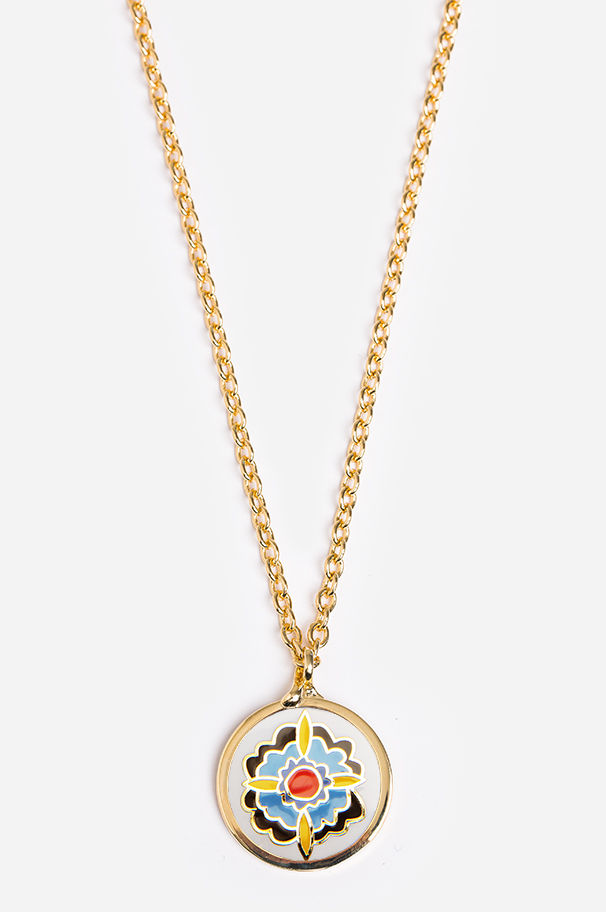 Add the finishing touches to your favorite Bohemian outfit with our Aries Reversible Pendant Necklace. This gorgeous piece is crafted from enamel and brass and is sure to give you a stunning accent piece you ll reach for again and again. Wear this necklace with your favorite denim shorts and an embroidered tee or with some boho leggings and a blouse.