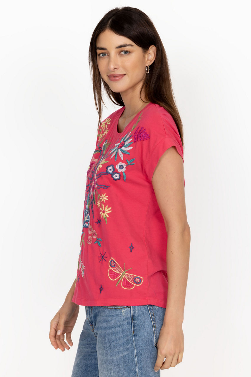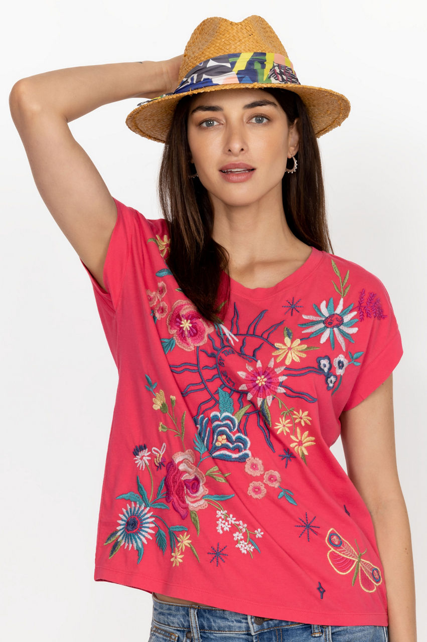 Refreshing and vibrant, the Arla Relaxed T-Shirt is a captivating take on a daily wardrobe basic. Cut in a relaxed fit, this tee is designed from pure, breathable cotton and features a round neck, short sleeves, and a colorful placement embroidery comprising dreamy florals. Style with everything from jeans to shorts and skirts.