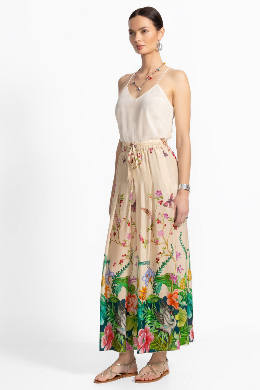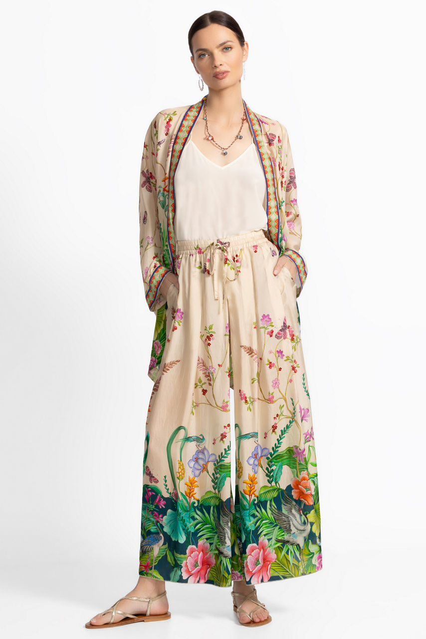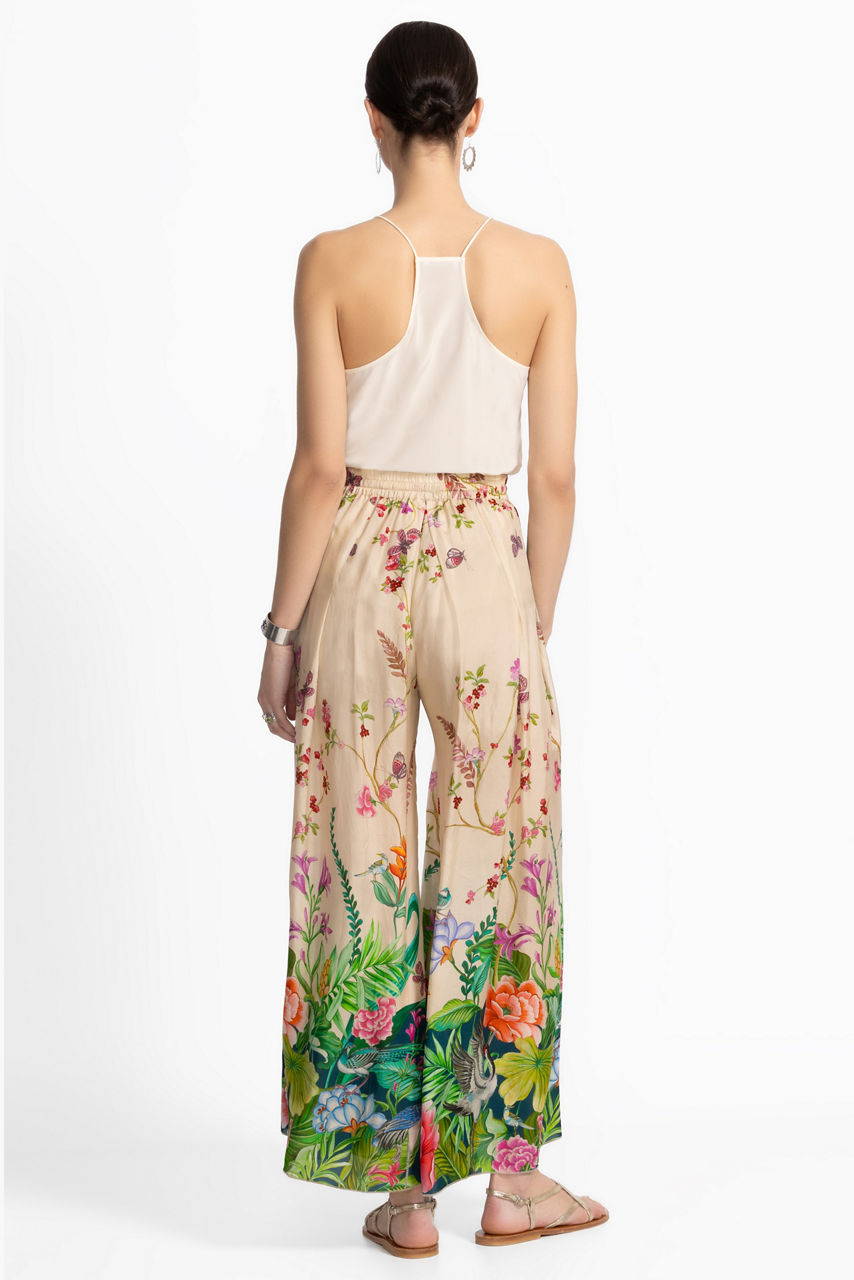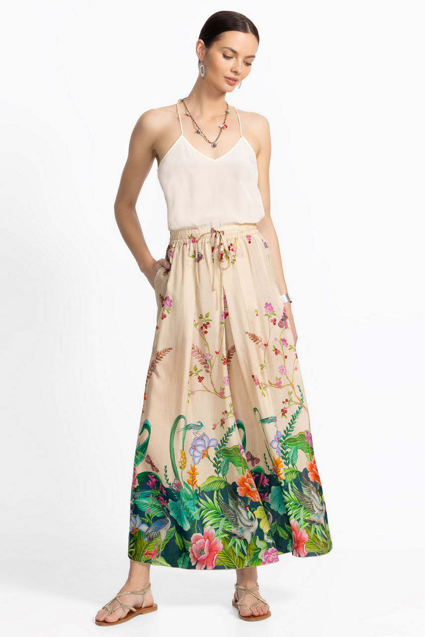 Artfully embellished with a stunning floral design, the Arya Pants are crafted from 100% sumptuous silk. Featuring an elastic waist enhanced with box pleating at the front and back, these flowing wide-leg pants include a partial lining and convenient slip pockets at the hips. Pair with a coordinating silk cami and glittering delicate jewelry for an elevated casual ensemble.