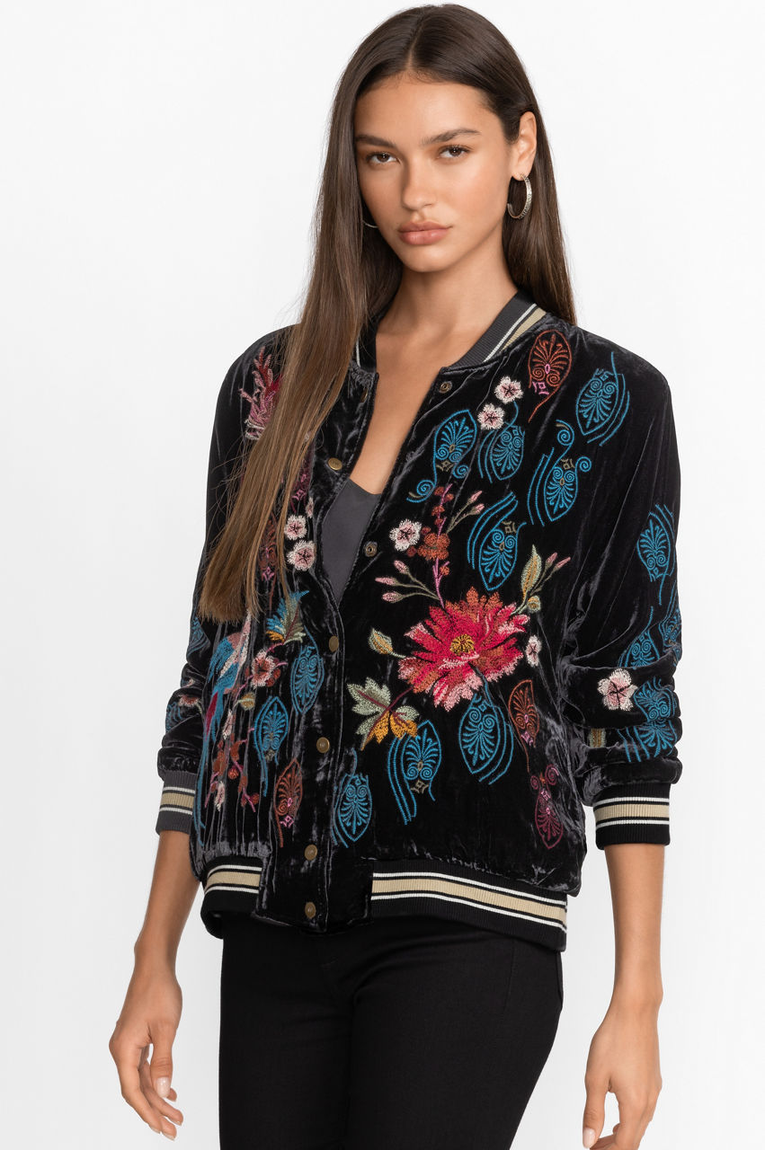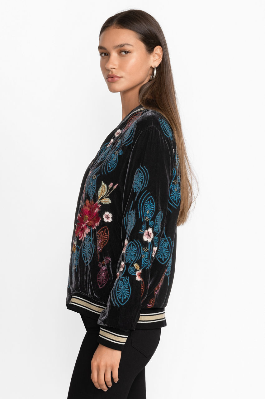 Ashira Velvet Snap Front Bomber Jacket