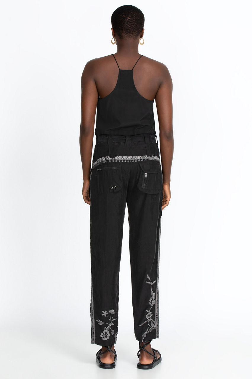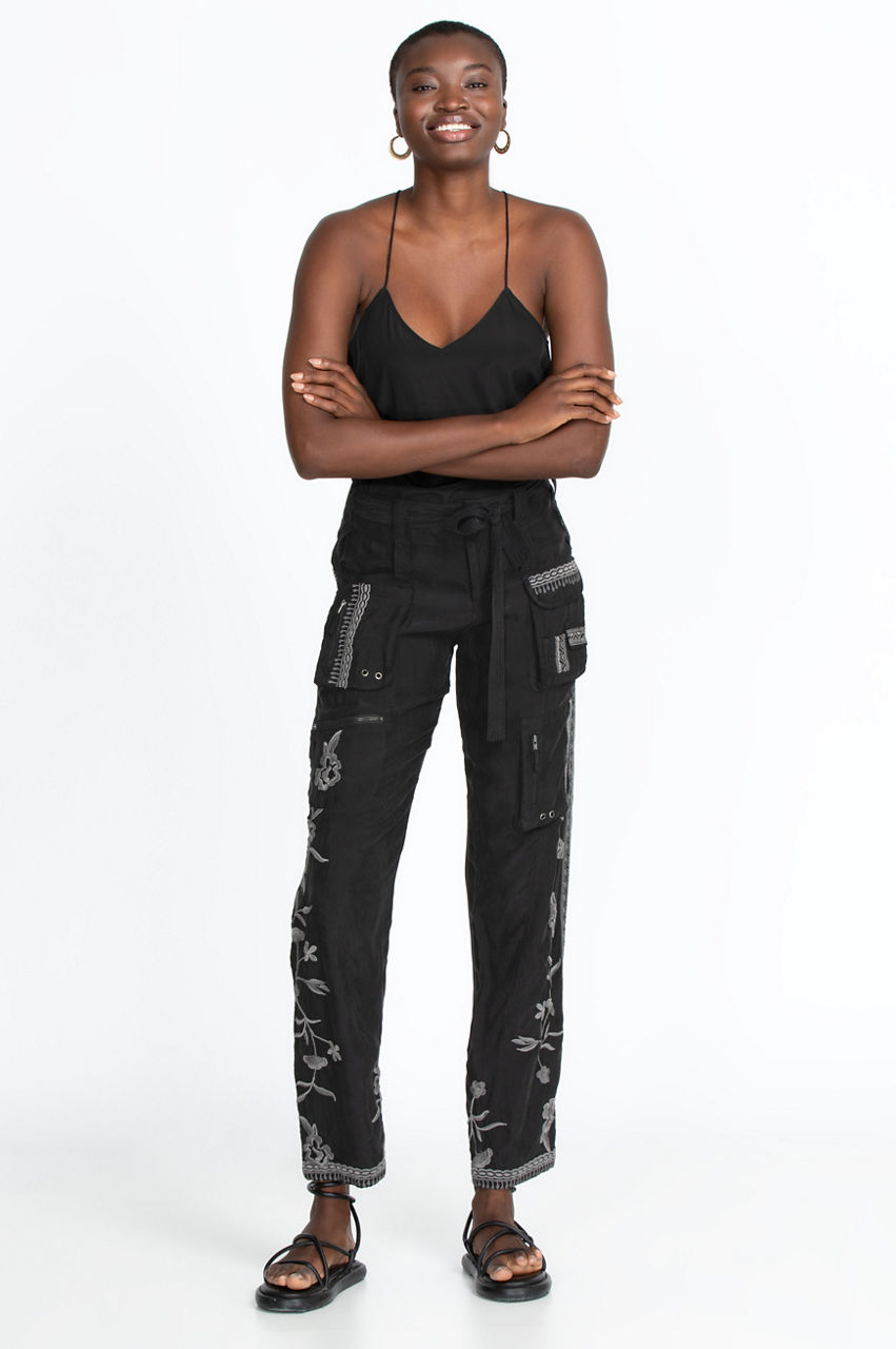Make a glamorous statement with the vibrant, lively pattern of our Aventura Cargo Pant. The perfect outfit to go out with your friends and see the sunrise after a party. Pair these pants with a silk top for an effortless, coordinated look.