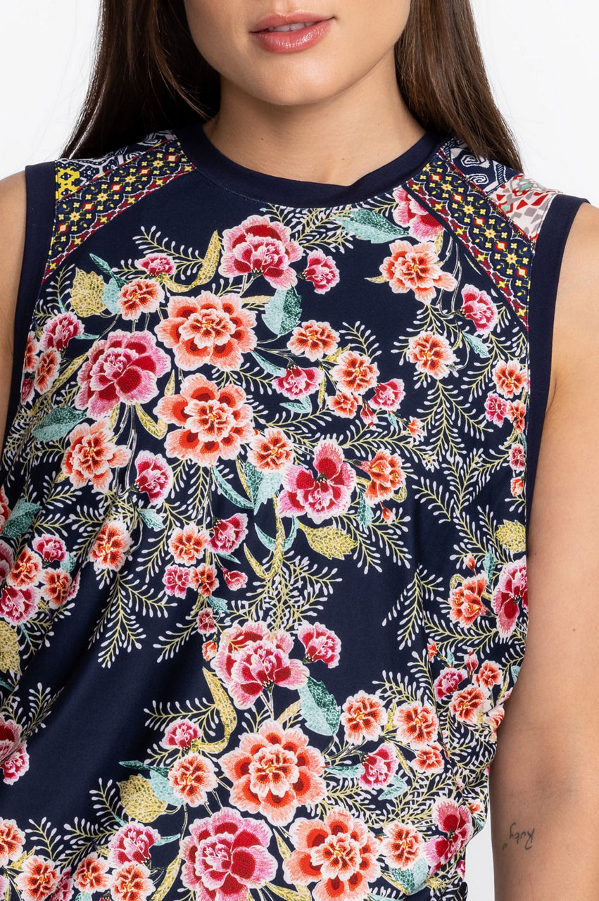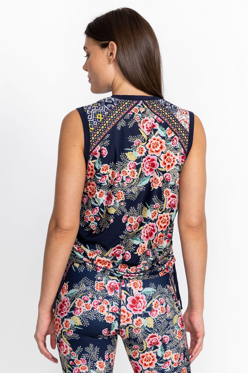 Aztec Flower Ruched Muscle Tank