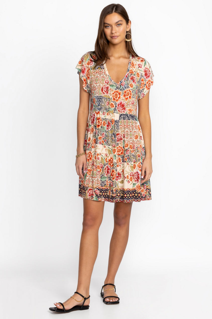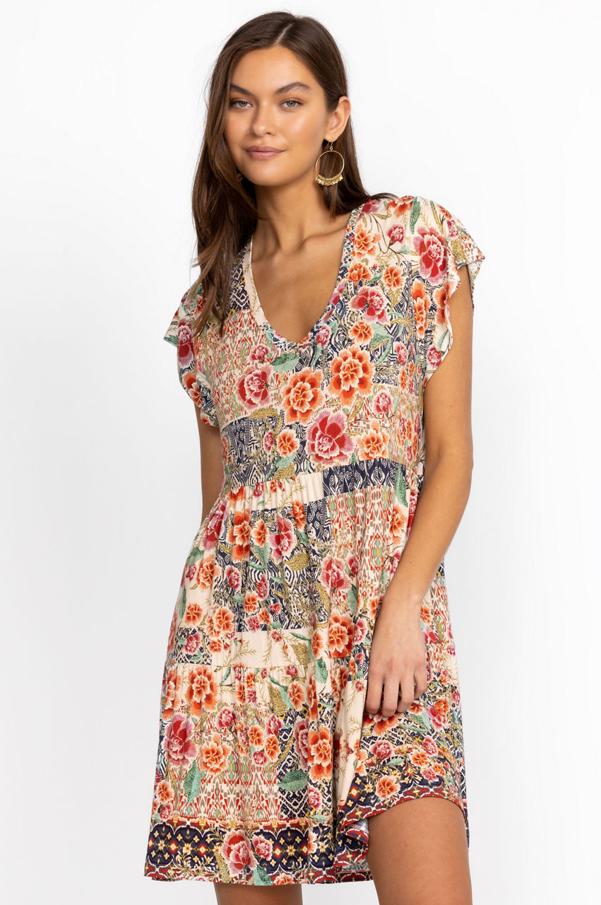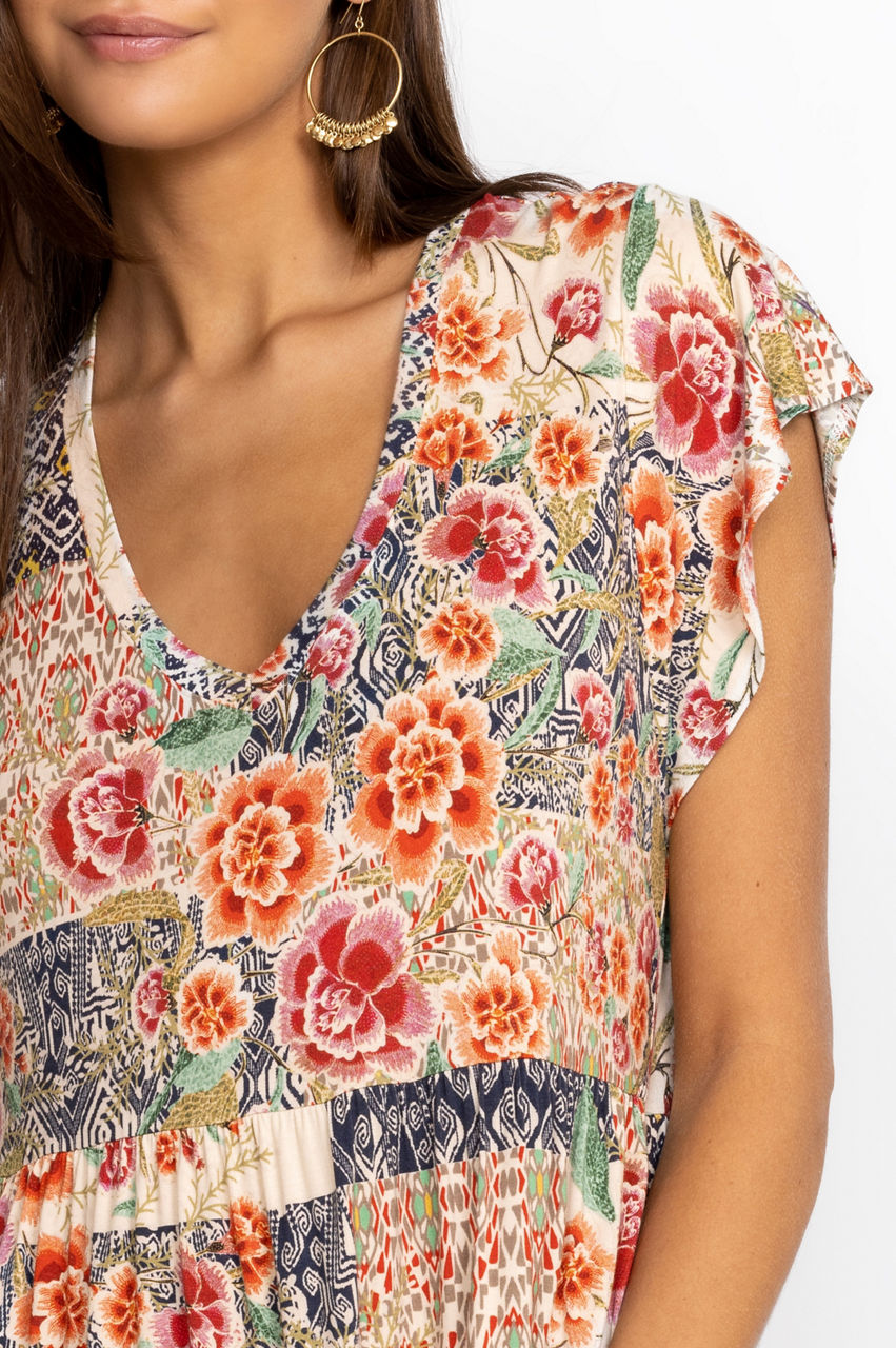 Embracing fresh florals in soft tones, the Aztec Flower Tiered Hem Dress makes a lasting impression. Crafted in a fit and flare silhouette and intricately detailed at the neckline, this tiered hem dress the perfect look for sunny days. Pair with espadrilles and sunglasses for a show-stopping look.