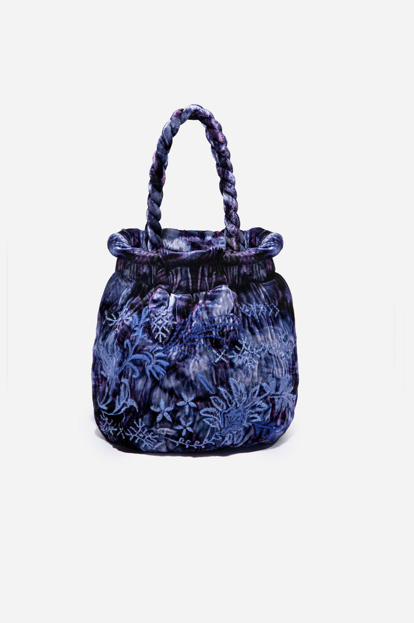 Carry your essentials in style with the Azure Velvet Pouch. This versatile accessory features a stunning print and delicate embroidery details. The snap closure makes your belongings easy to access, while the deep hue of this elegant accessory will go well with denim or create a sophisticated contrast with neutral or pastel pieces.