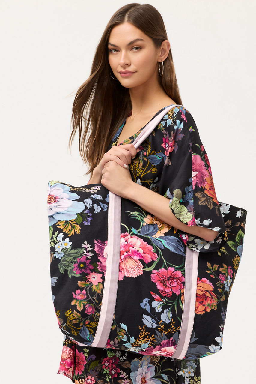The Baccara Beach Tote brings bold, blooming beauty to sunny days with its vibrant floral print set against a striking dark background. Spacious and lightweight, it features sturdy contrast straps and an interior zip pocket to keep essentials organized. Perfect for beach trips, market runs, or weekend getaways, it’s the ultimate blend of functionality and standout style.