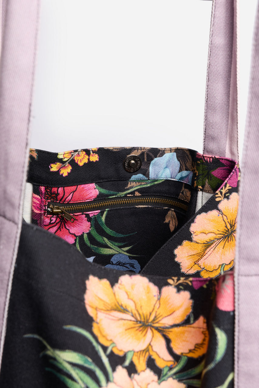 The Baccara Beach Tote brings bold, blooming beauty to sunny days with its vibrant floral print set against a striking dark background. Spacious and lightweight, it features sturdy contrast straps and an interior zip pocket to keep essentials organized. Perfect for beach trips, market runs, or weekend getaways, it’s the ultimate blend of functionality and standout style.