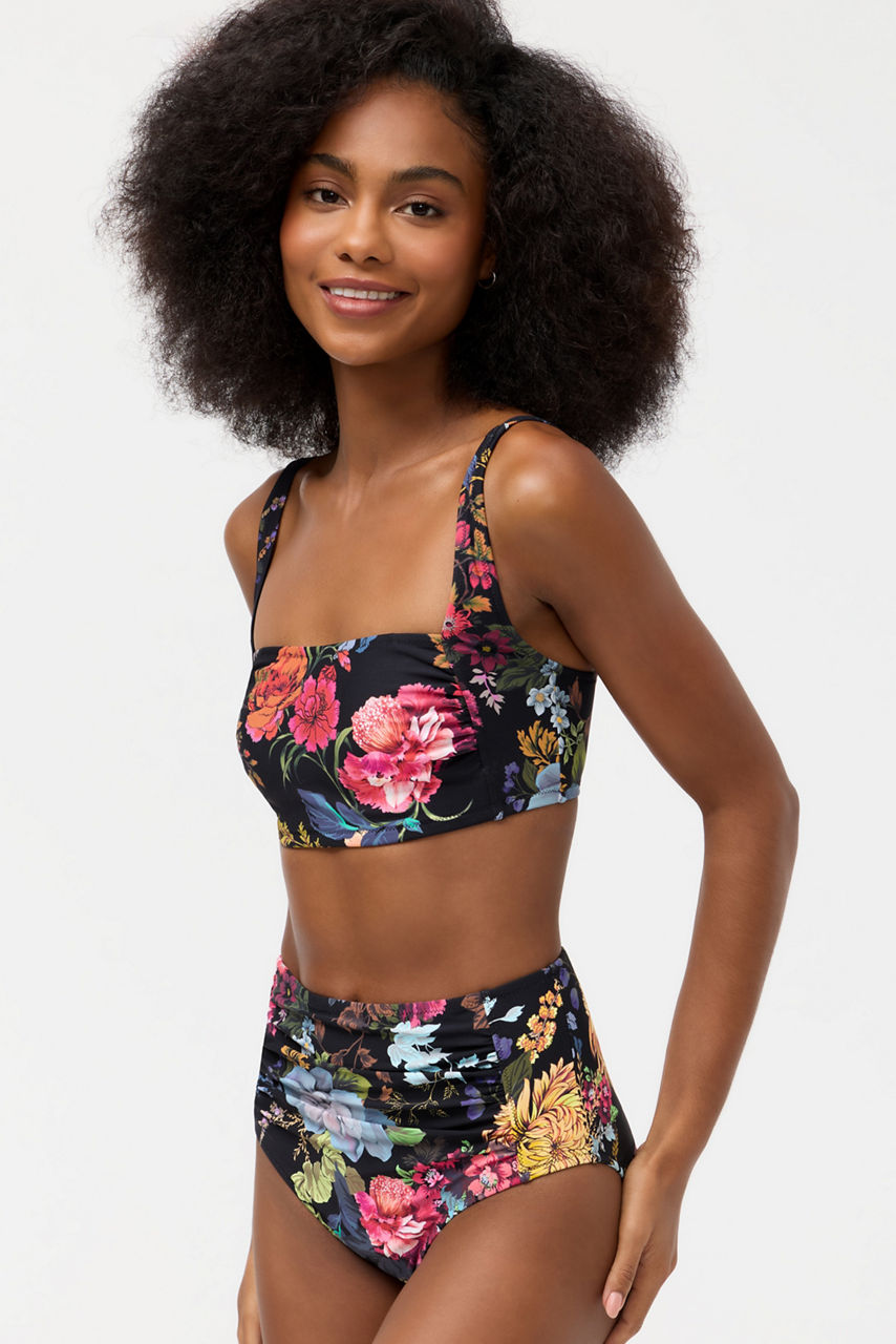 The Baccara Ruched Bikini Top is beautifully embellished with a vibrant floral motif. Designed with a square neckline and adjustable shoulder straps, this bold swim top is finished with intricate ruching at the front. Pair with the Baccara Ruched Bikini Bottoms and a wide-brim sun hat for an afternoon of sunbathing by the pool.