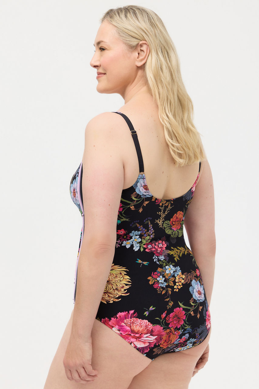 Beautifully embellished with a vibrant floral pattern, Baccara Ruched One Piece is a fresh take on a classic swim silhouette. Featuring a sweetheart neckline with a ruched front bust, this unique suit is finished with a scoop back and adjustable shoulder straps for a customizable fit. Pair with a bold linen maxi skirt and sleek slides for a polished poolside look.