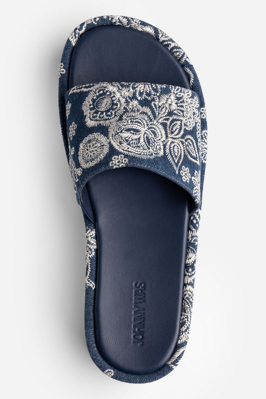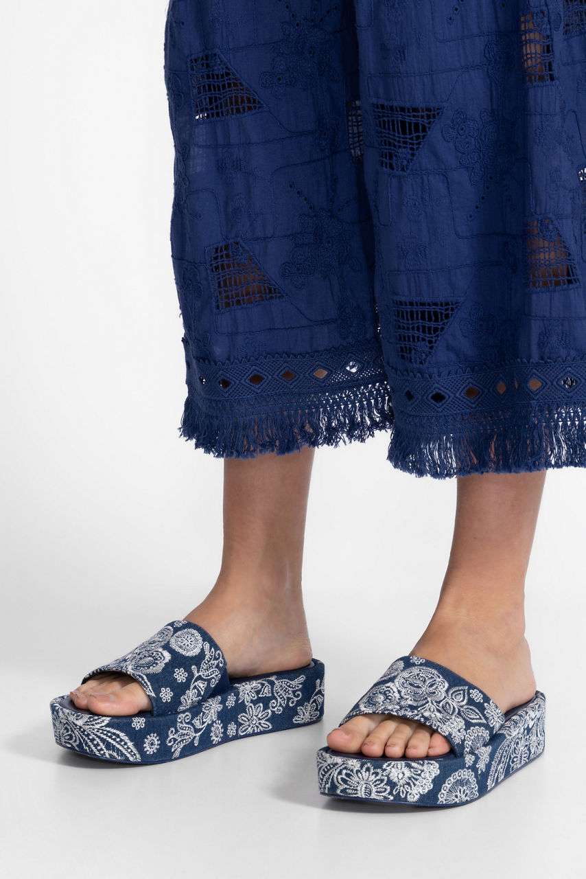 BANDANA EMBROIDERED DENIM PLATFORM SLIDE