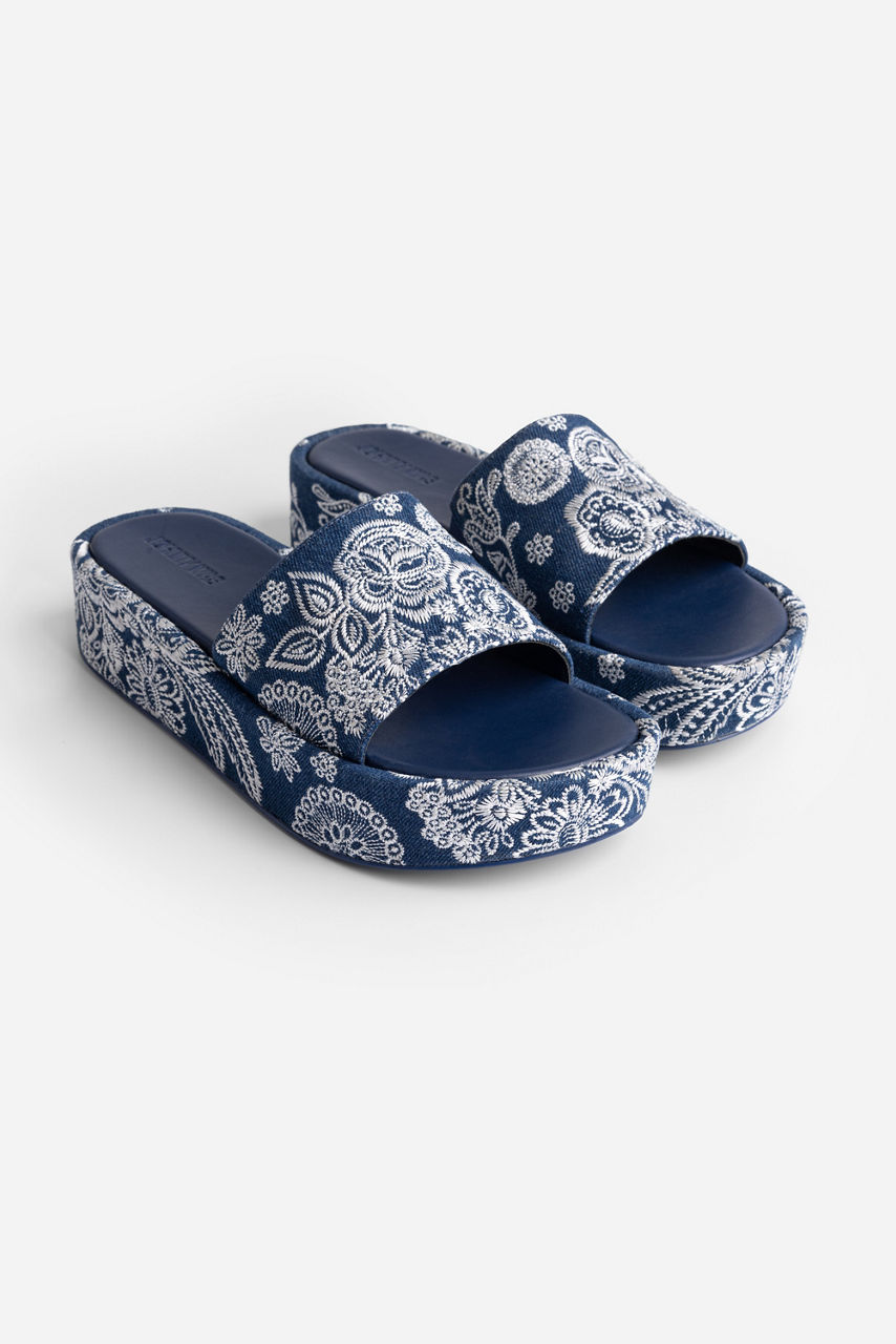 BANDANA EMBROIDERED DENIM PLATFORM SLIDE
