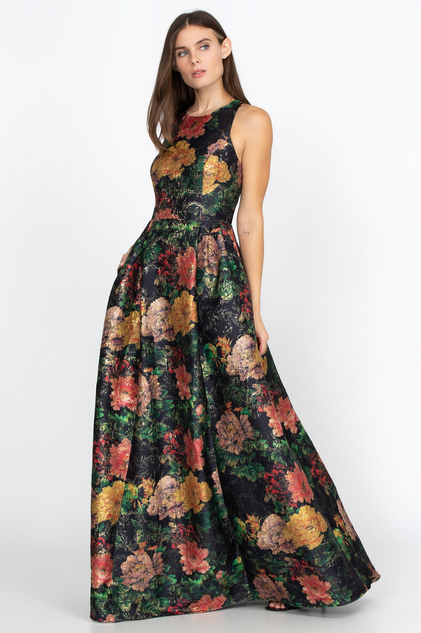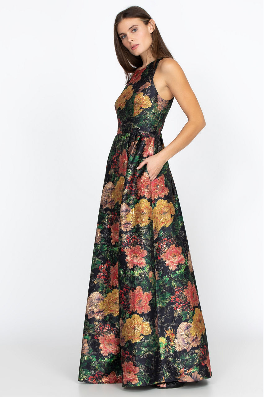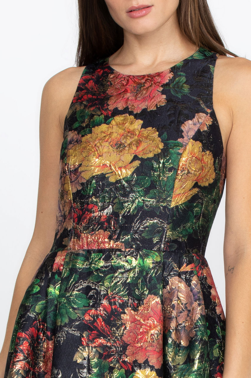 The Bayani Jacquard Dress is a dashing piece with its bold floral print and delicate cut. With its convenient pockets and comfortable fit, it' s also a versatile dress that you can wear to the office, on a night out with friends, or dress up for a special occasion. Try pairing it with some simple heels, a color-block handbag, and some bold earrings for a sophisticated look.