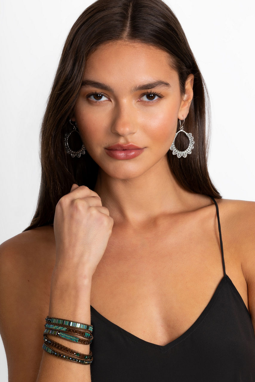 Offering an eclectic look, this handcrafted Beaded Wrap Bracelet creates a stunning layered jewelry styling. Elegantly embellished with brilliant glass and crystal beads in turquoise tones, this bracelet is finished with silver-tone accents for a hint of sparkle. Pair with a boho-chic ensemble for a casual look with elevated style.
