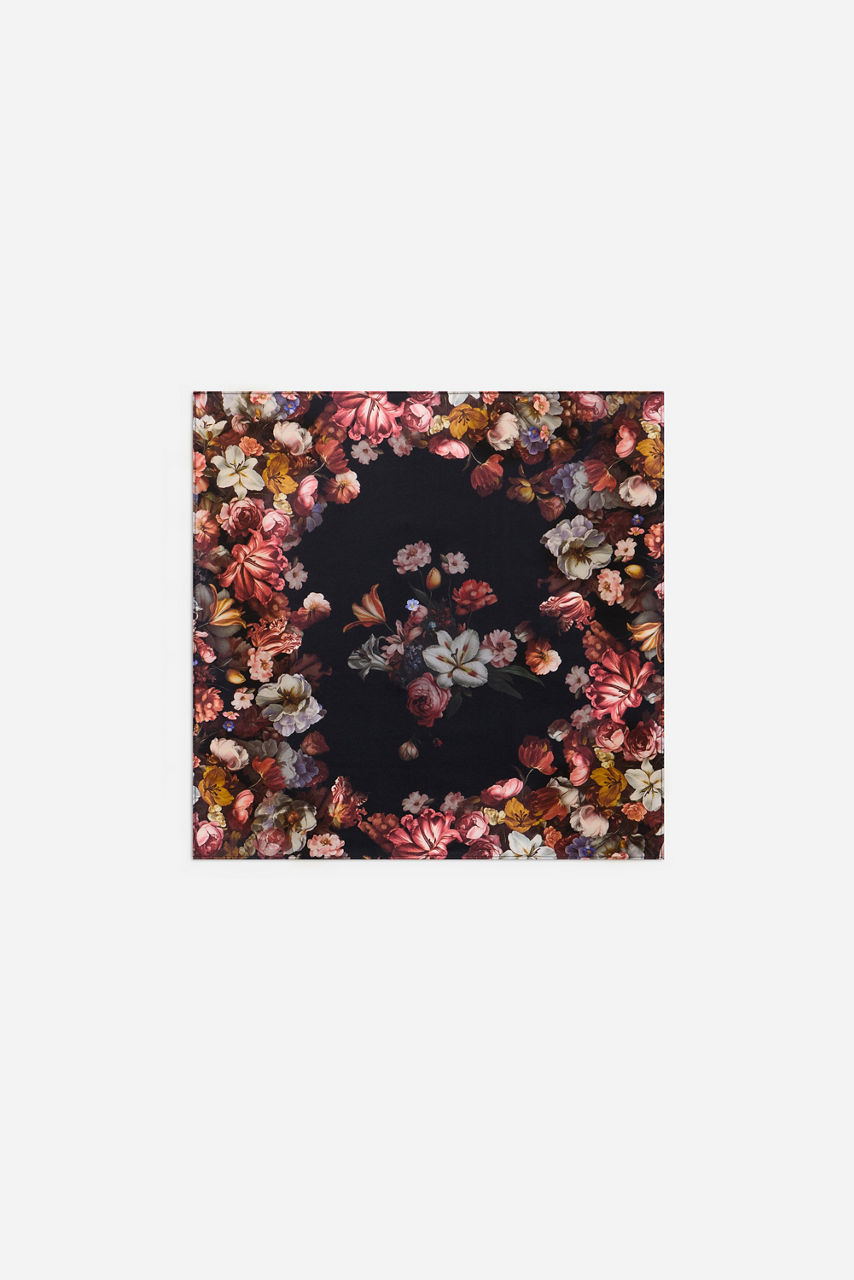 Indulge in 100% sumptuous silk with the Beckett Bloom Neck Scarf, featuring a delicately rolled hem and an opulent floral design bursting with color. Its rich texture and intricate pattern evoke effortless luxury. Tie it at your neck, weave it through your hair, or accent your bag for a touch of boho chic.