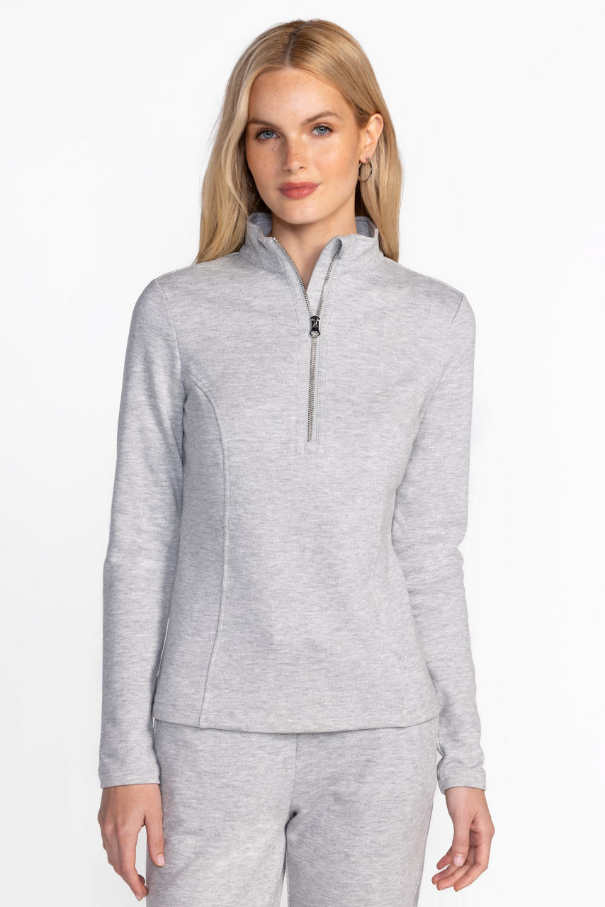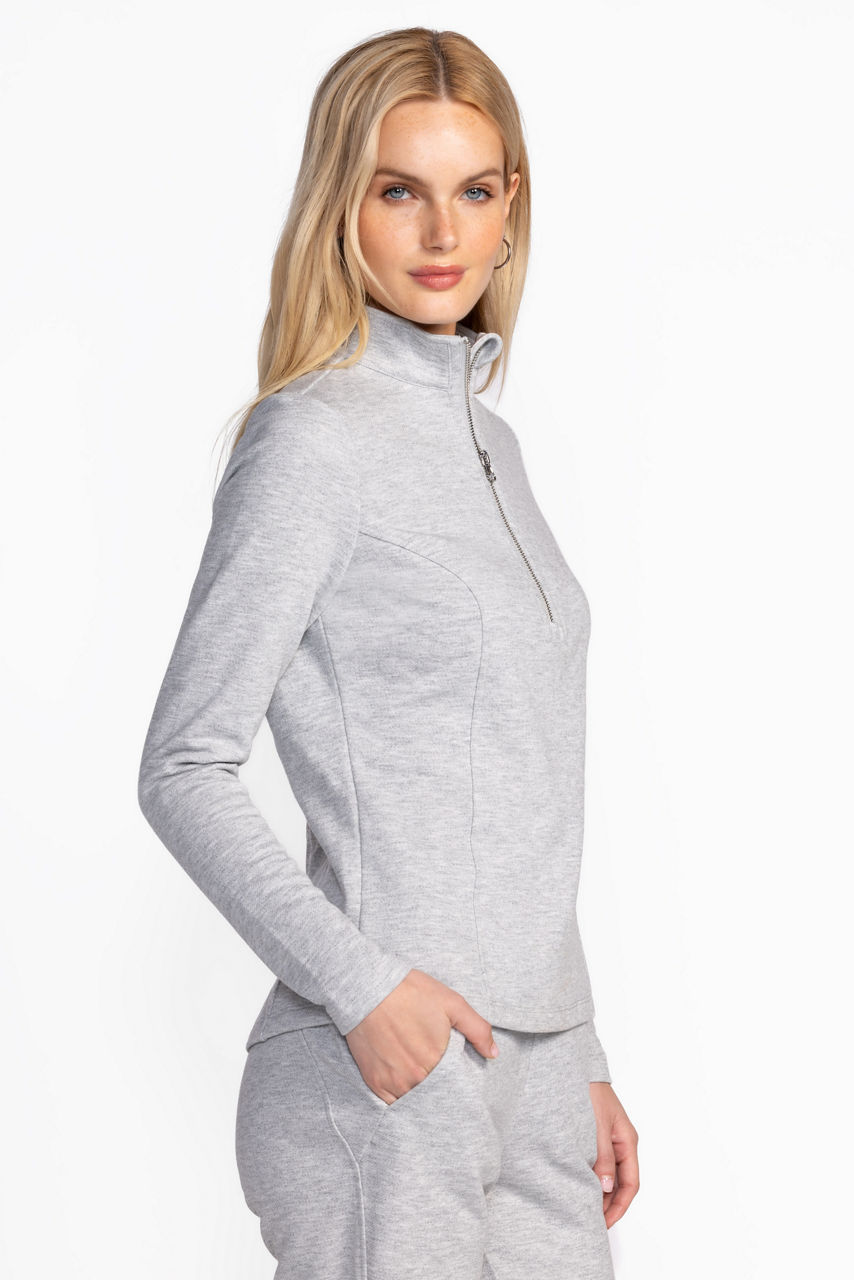 Thoughtfully crafted from a breathable cotton blend, the Bee Active Athletic Mock Neck Pullover adds an additional layer of warmth for your workout. This cozy fitted pullover features a half-zip mock neck and is finished with princess seams for a striking silhouette. Pair with flared leggings and athletic sneakers for a cool morning run.