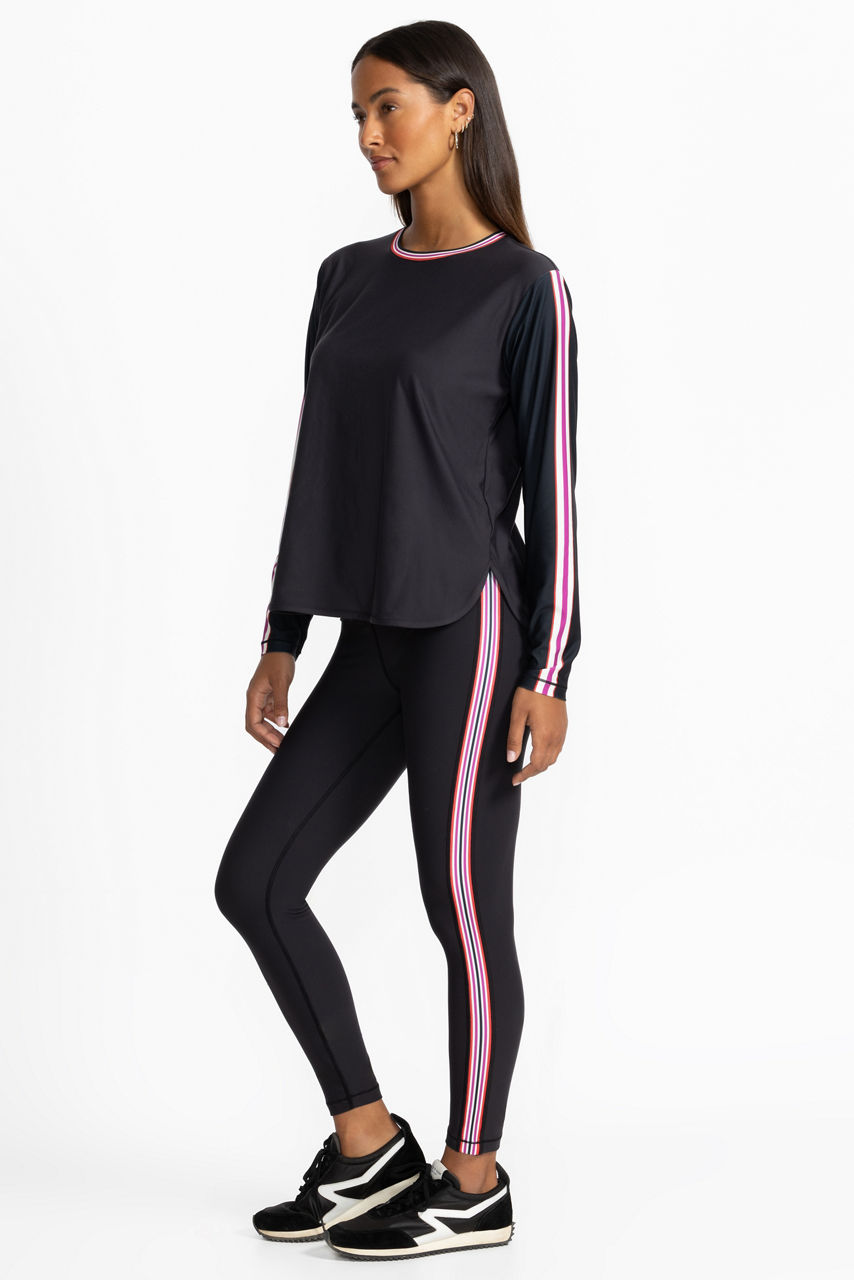 Designed to be equal parts comfortable and stylish, the Bee Active Drawstring Leggings offer a fresh take on classic black leggings. Designed with a drawstring waistband for a customizable fit, these sleek leggings feature a coin pocket along the waistband and bold contrasting trim at the waist and side panels. Pair with a coordinating cropped top and athletic sneakers for a trip to the gym.