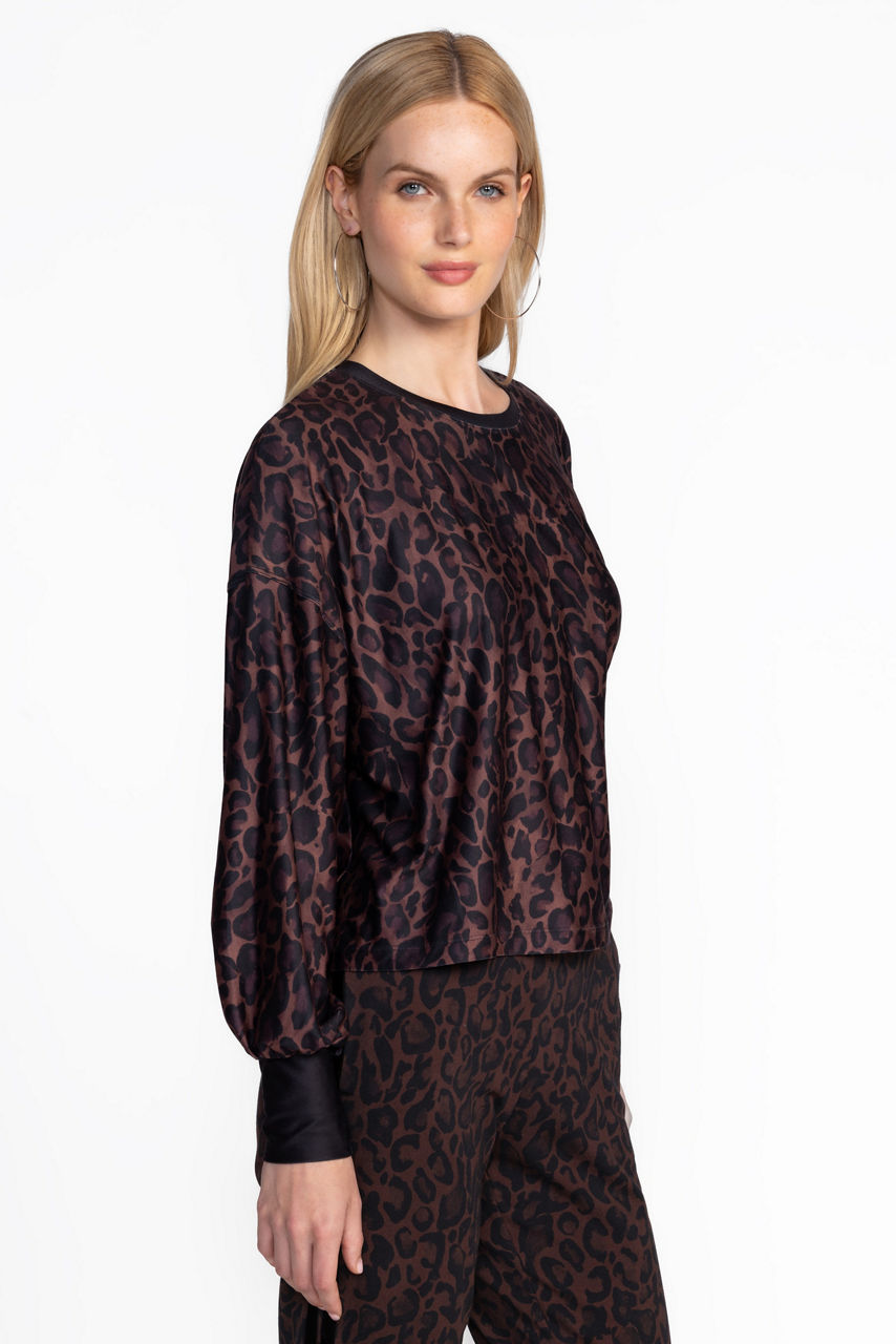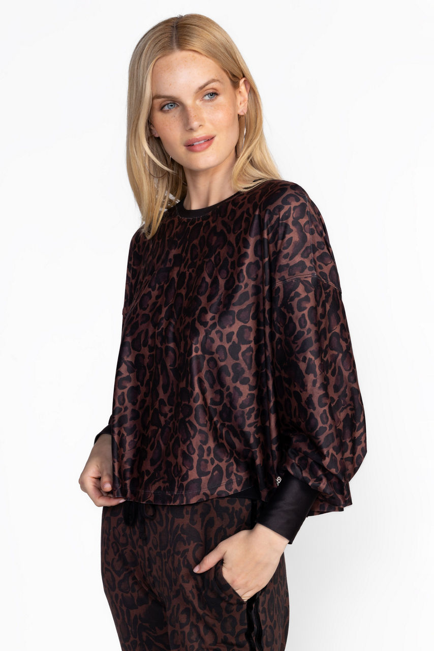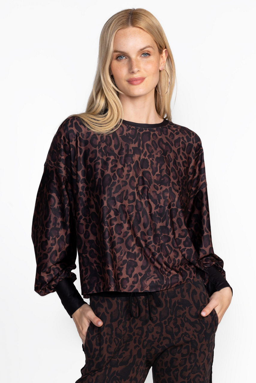 Offering a fresh take on trendy athleisure, the Bee Active Drop Shoulder Crew Neck Tee is embellished with a tone-on-tone leopard print Featuring a classic crew neckline and a drop shoulder line, this cozy pullover is finished with billowing bishop sleeves for a hint of drama. Pair with the Bee Active Cargo Track Pants and fashion sneakers for a fun weekend style.