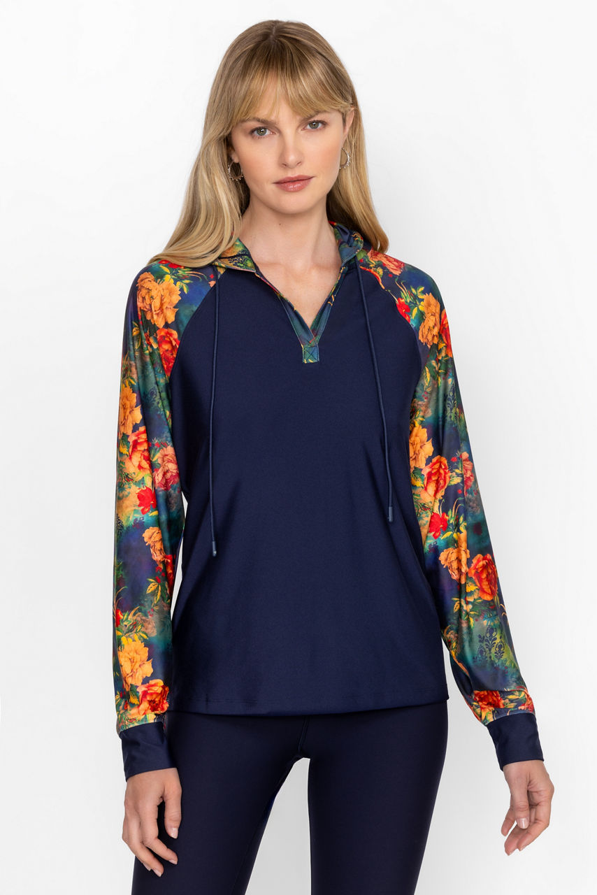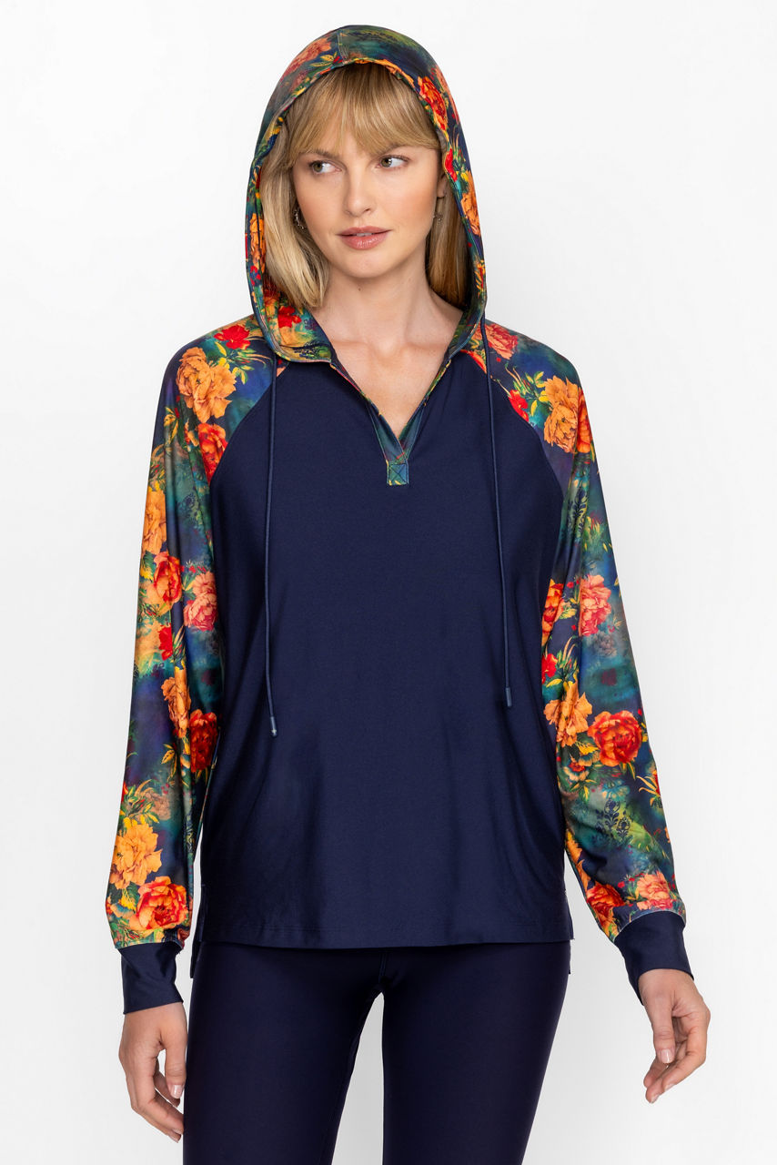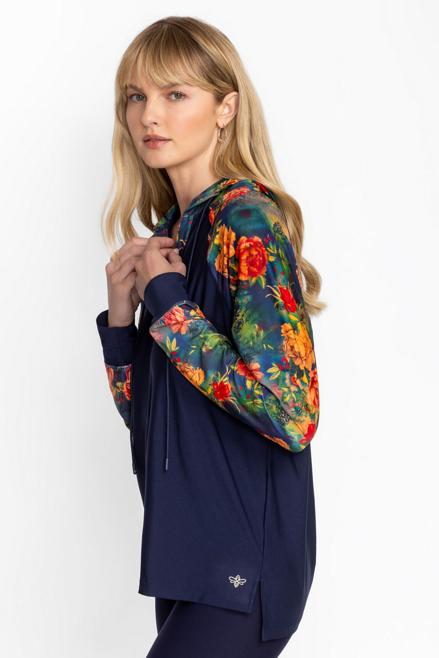 Crafted from a lightweight material with a hint of stretch, the Bee Active Featherweight Pullover Hoodie is an easy casual layering piece. Featuring a split V-neckline with an attached hood, this cozy pullover offers contrasting raglan sleeves and side slits for a comfortable fit. Layer over an athletic tank and pair with leggings and fashion sneakers for a versatile look.