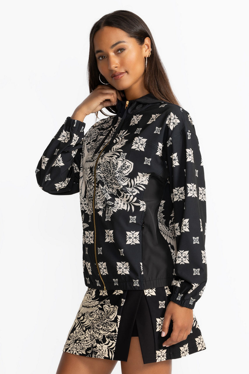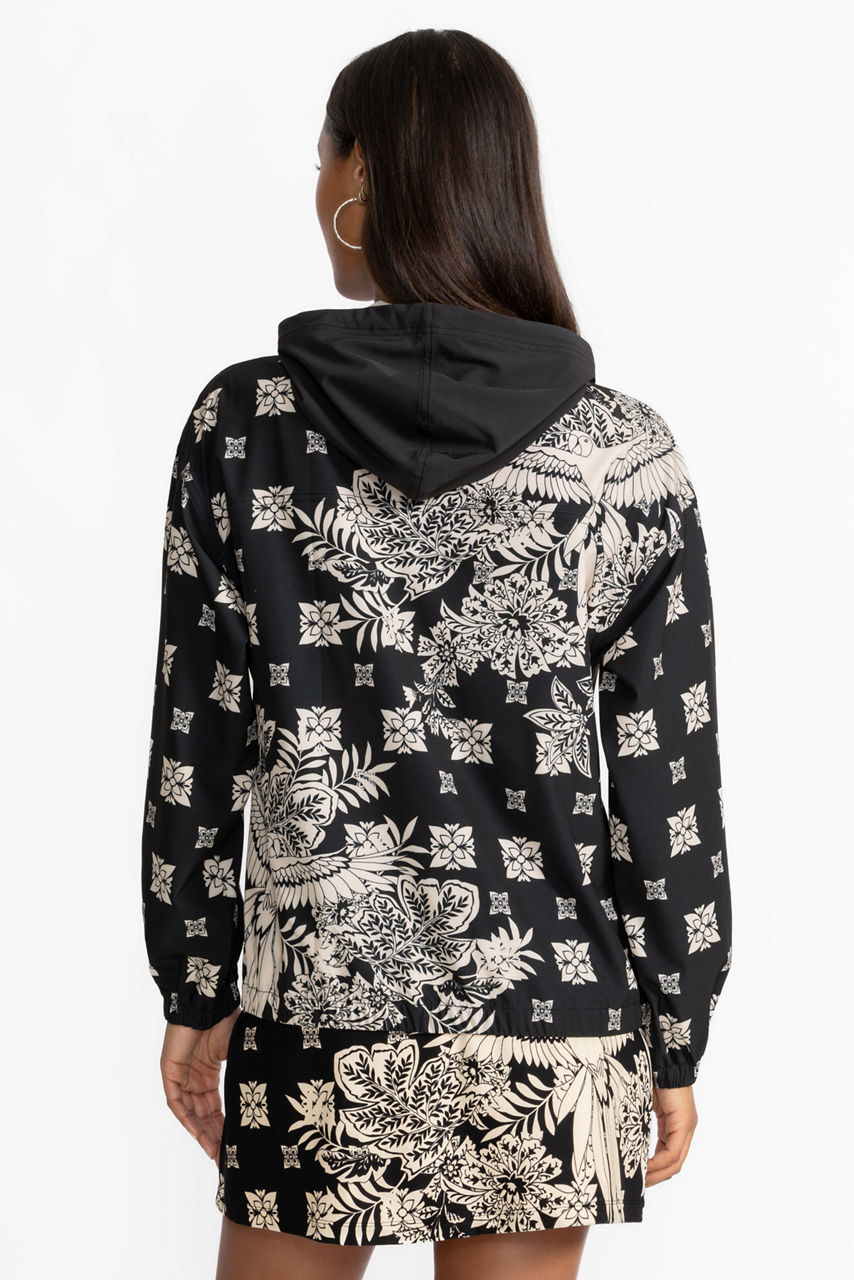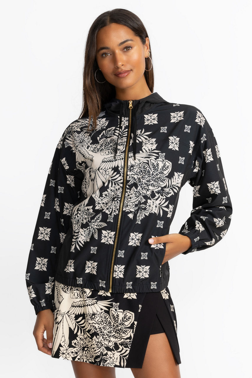 Crafted from a recycled stretch fabric, the Bee Active Full-Zip Jacket offers a fresh take on modern athletic wear. Featuring an easy zip front and cozy hood with drawcord, this lightweight jacket is adorned with beautiful eye-catching blooms for a splash of color. Pair with the Bee Active Side Snap Baby Bell Pants and classic white sneakers to complete the look.
