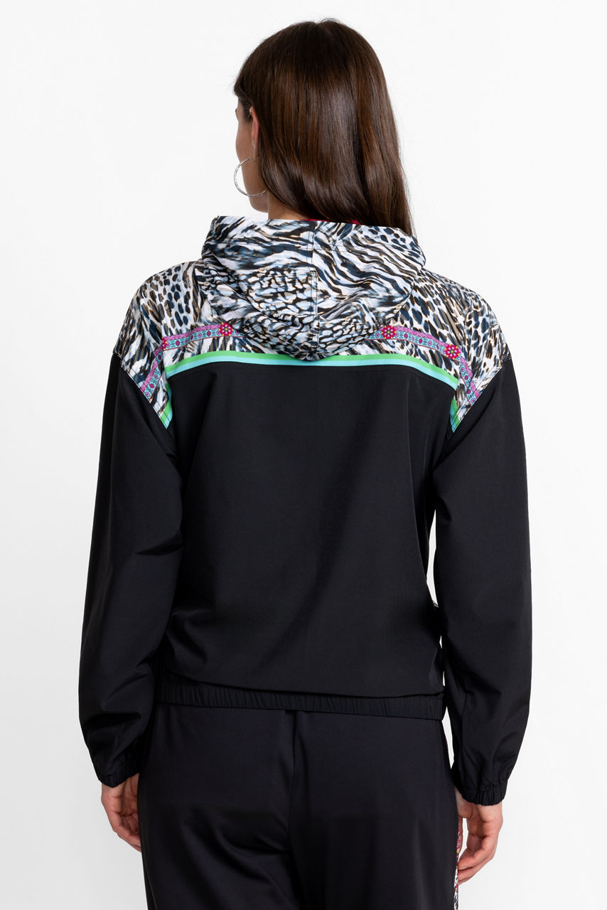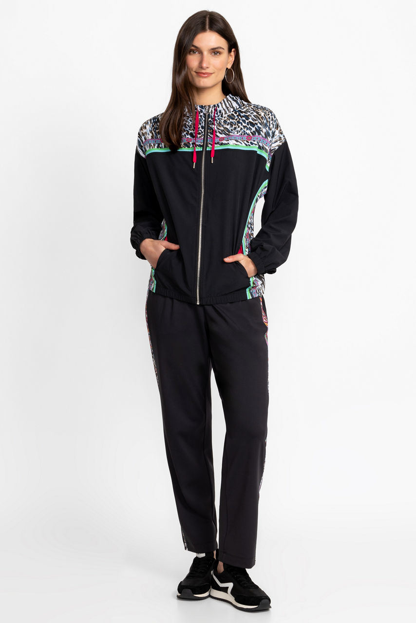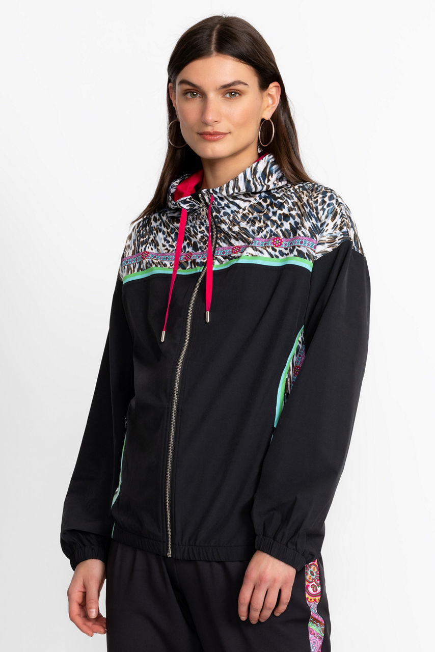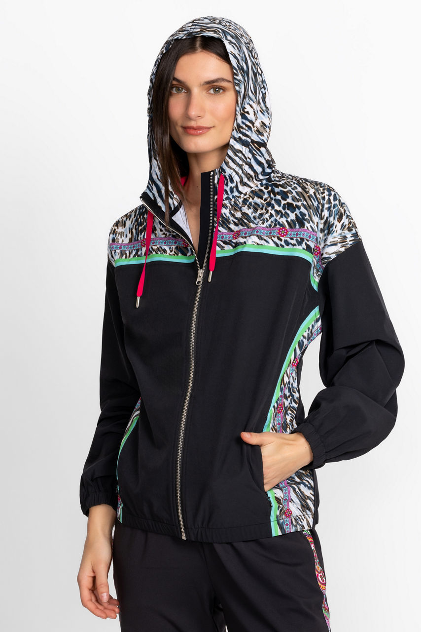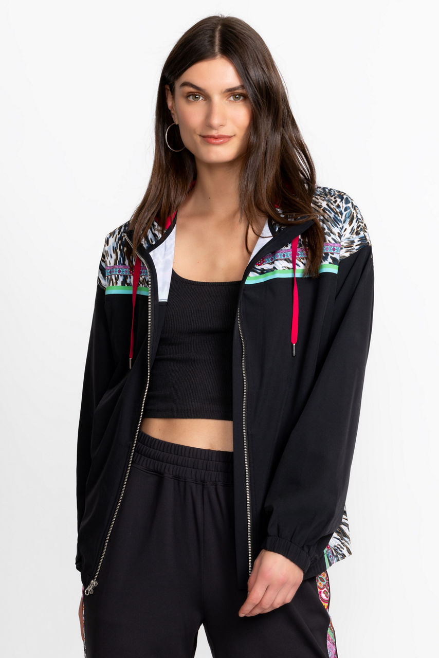 Crafted from a recycled stretch fabric, the Bee Active Full-Zip Jacket offers a fresh take on modern athletic wear. Featuring an easy zip front and cozy hood with drawcord, this lightweight jacket is adorned with beautiful eye-catching blooms for a splash of color. Pair with the Bee Active Side Snap Baby Bell Pants and classic white sneakers to complete the look.