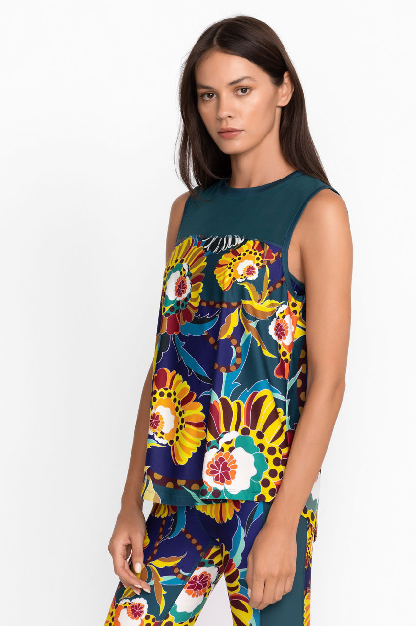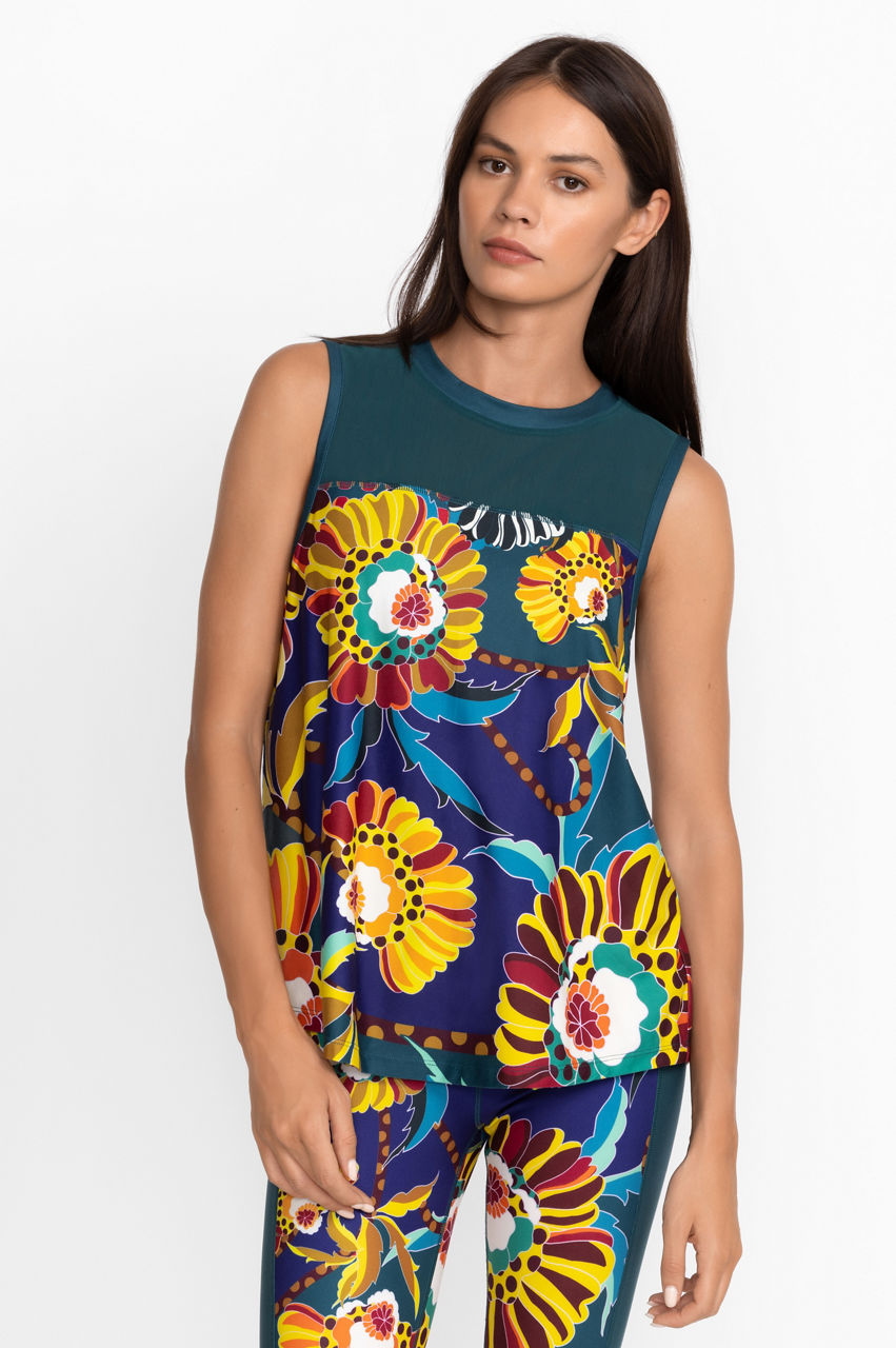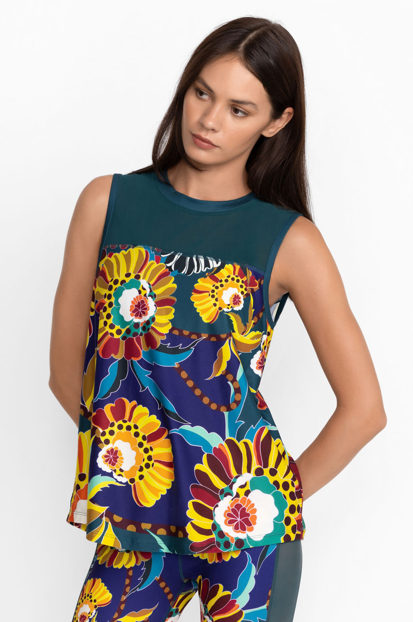 Providing a harmonious blend of invigorating florals and breathable active mesh, the Kimbra High Low Mesh Contrast Tank brings your workout to life. Featuring a gracefully curved hem and tunic length with mesh insets at the neckline all bathed in vibrant color. Team with sleek leggings a bold fashion sneaker to make a statement without saying a word.
