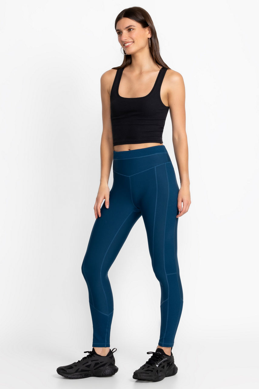 The Bee Active Jacquard Blocked Leggings offer a trendy update to classic leggings and are designed for comfort and style. Crafted from a lightweight stretch fabric, these unique leggings are finished with contrasting jacquard panels for visual interest and feature a coin pocket along the back waistband. Pair with a Bee Active Sports Bra and cotton tank for a polished gym look.