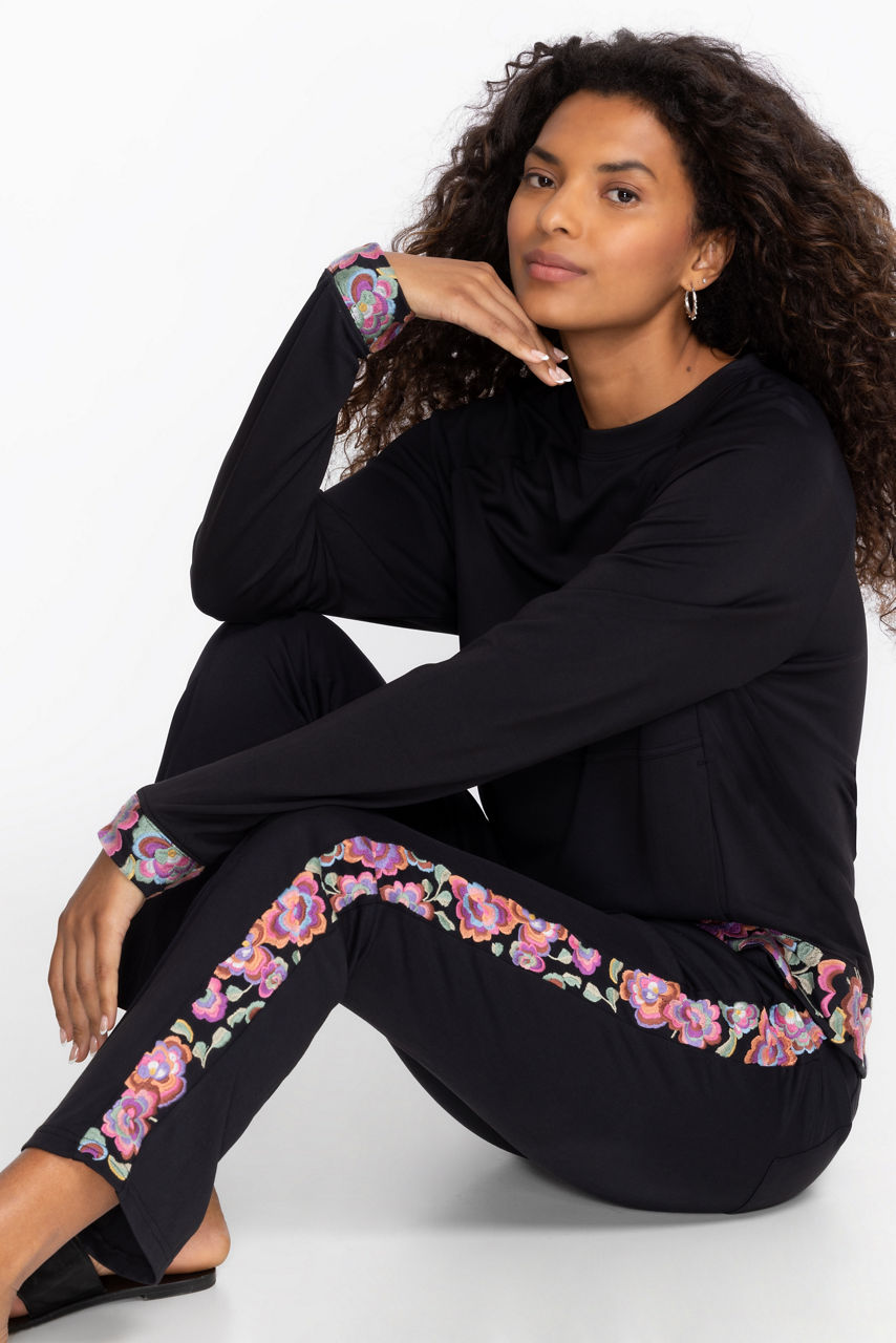 Offering the perfect combination of comfort and style, the Bee Active Jetsetter Pants are excellent for travel. Featuring a comfortable elastic waist with a drawstring for a customizable fit, these easy-to-wear pants are finished with pockets and a vibrant splash of colorful florals. Pair with a tunic tee and trendy sneakers for a day on the go.