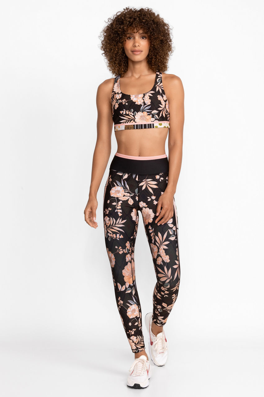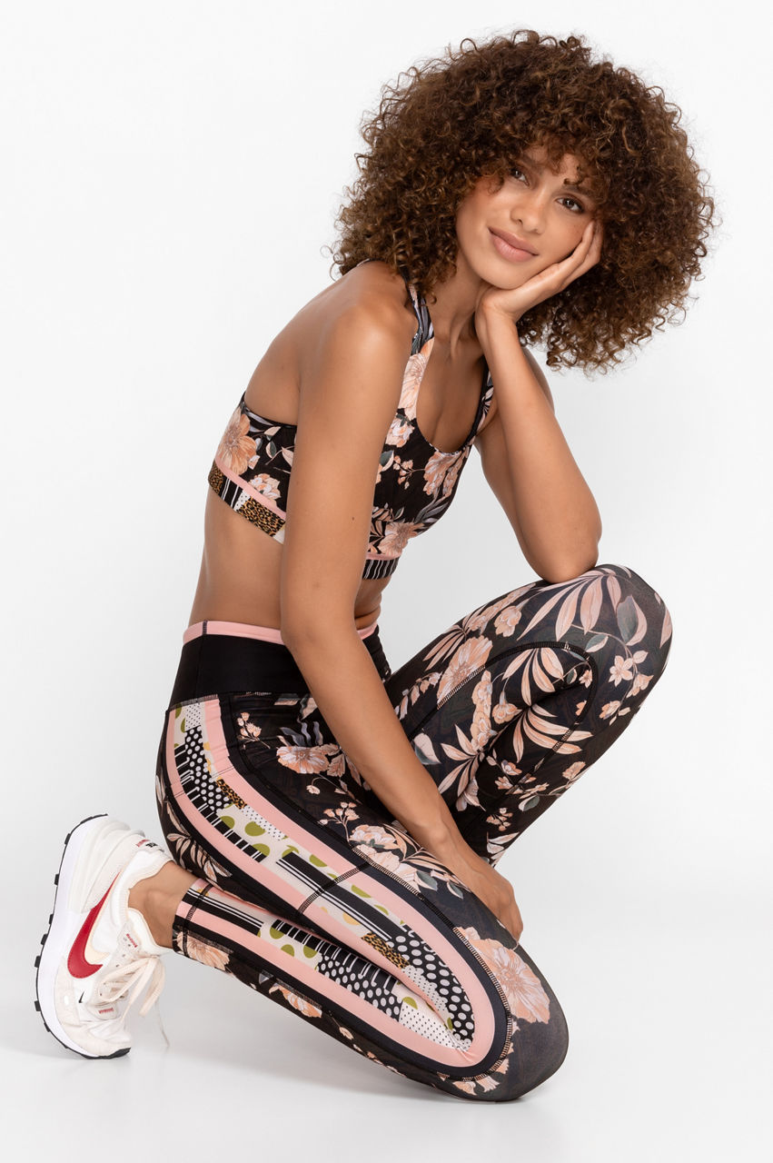 Adorned in beautifully bold blooms, the Bee Active Leggings with Pockets offer a feminine twist on classic activewear. Featuring a wide waistband and fitted silhouette, these unique leggings are highlighted by a tuxedo stripe at the leg line for a pop of color. Pair with black tee and fashion sneakers for a casual look with a lot of flair.