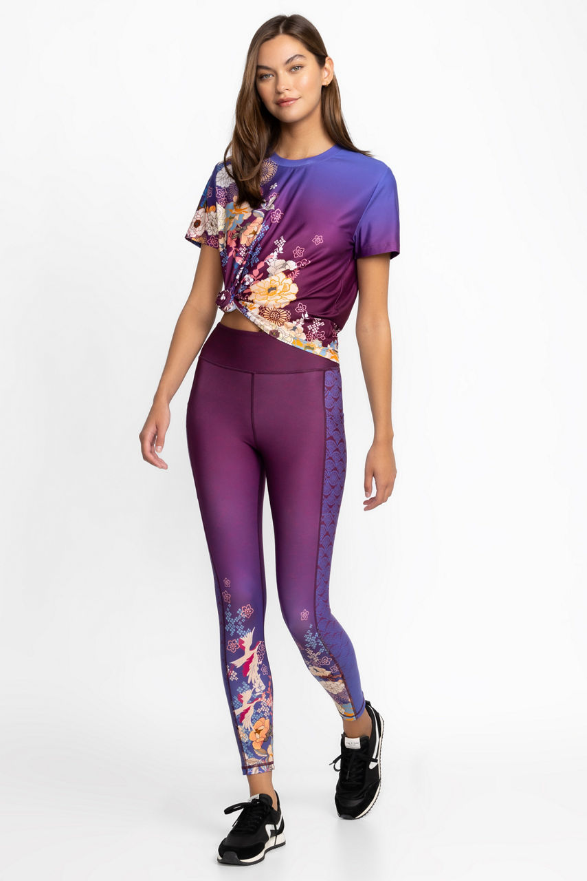 Adorned in beautifully bold blooms, the Bee Active Leggings with Pockets offer a feminine twist on classic activewear. Featuring a wide waistband and fitted silhouette, these unique leggings are highlighted by a tuxedo stripe at the leg line for a pop of color. Pair with black tee and fashion sneakers for a casual look with a lot of flair.