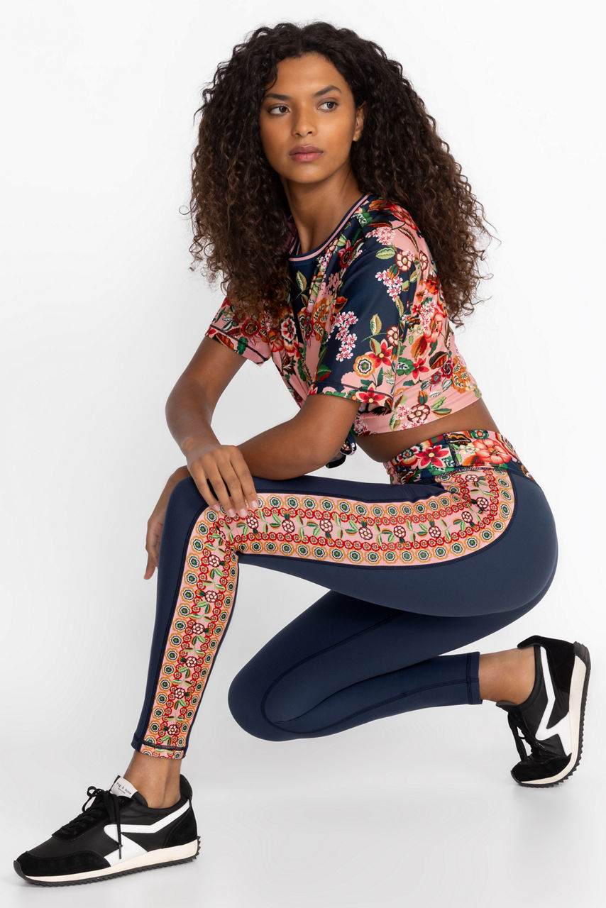 Adorned in beautifully bold blooms, the Bee Active Leggings with Pockets offer a feminine twist on classic activewear. Featuring a wide waistband and fitted silhouette, these unique leggings are highlighted by a tuxedo stripe at the leg line for a pop of color. Pair with black tee and fashion sneakers for a casual look with a lot of flair.