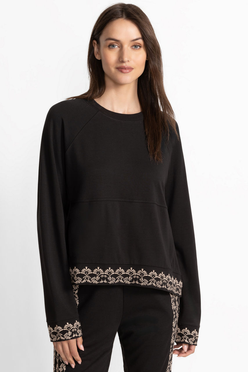 Embellished with a delicate white floral design on a field of black, the Bee Active Long Sleeve Crew Pullover is also accented with detailing at the cuffs and hem. Designed with a crew neckline and Raglan sleeves, this elevated activewear top is finished with an interior kanga pocket. Pair with relaxed-fit joggers and fashion sneakers for a lunch date with friends.