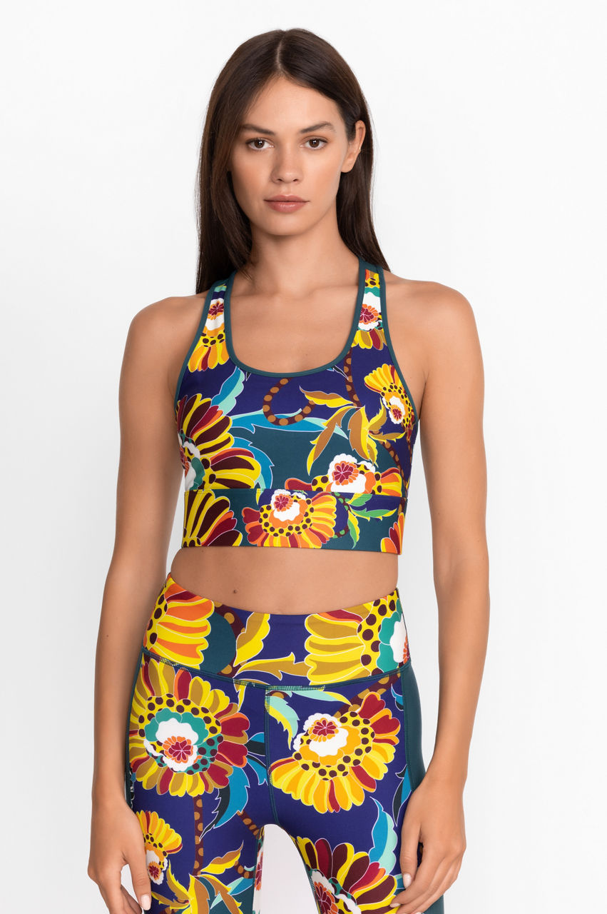 Adding a touch of femininity to your daily workout, the Kimbra Mesh Back Longline Bra boasts vivid floral bouquets bursting with color. Crafted from a durable, machine washable fabric this bra features a breathable mesh inset for a cool feel.