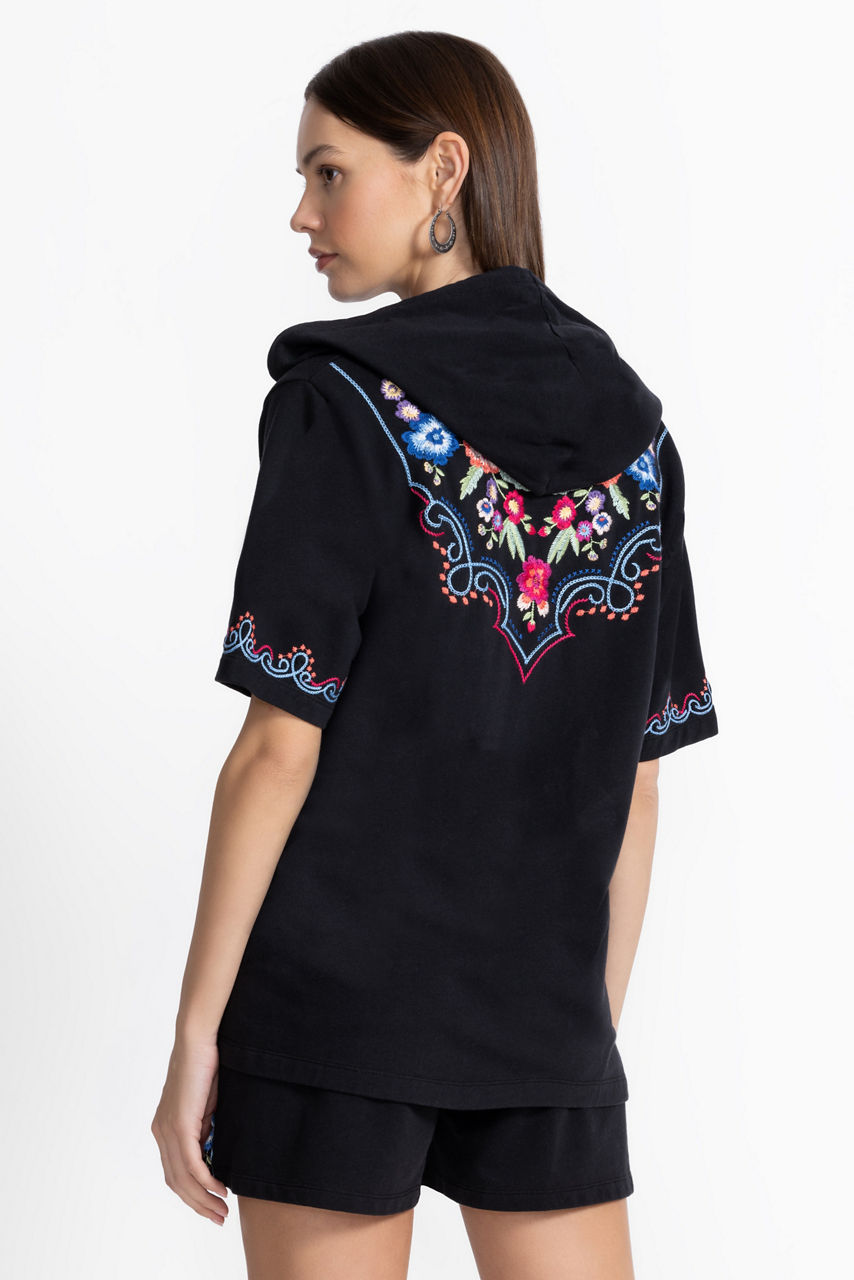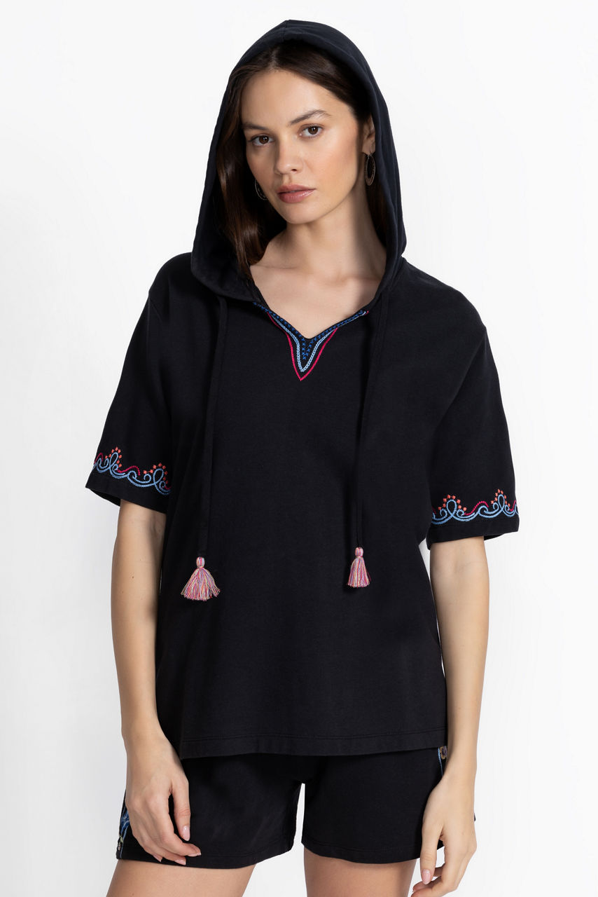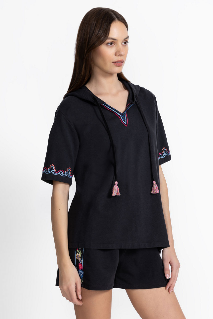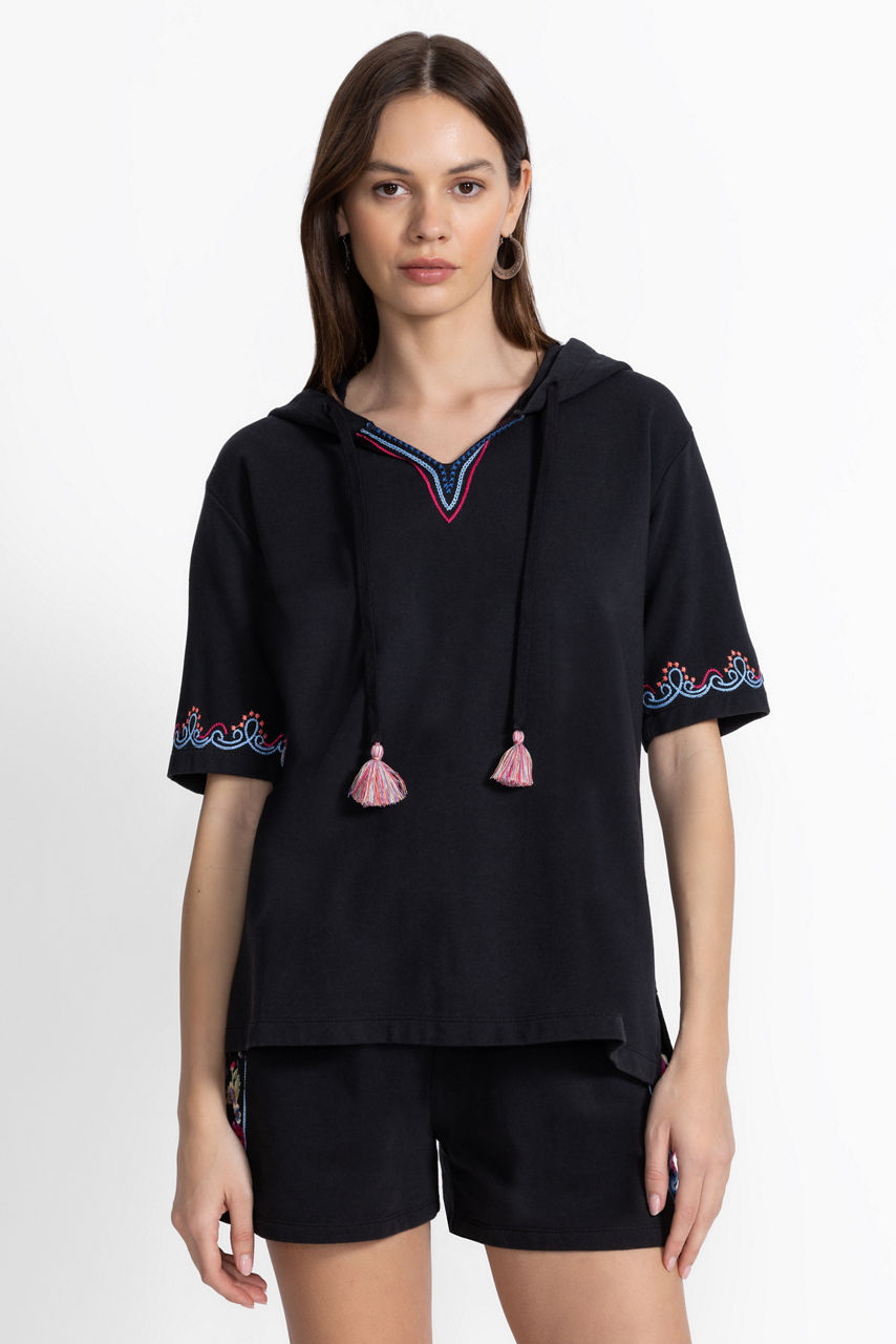 Brilliantly adorned with splashes of bold color, the Bee Active Notched Pullover Hoodie adds a touch of whimsy to daily casual wear. Crafted from a breathable cotton blend with a hint of stretch, this hooded pullover features a split V-neckline and short sleeves, both embellished with colorful embroidered detailing. Pair with the Bee Active Jetsetter Shorts and fashion sneakers for a fresh casual ensemble.