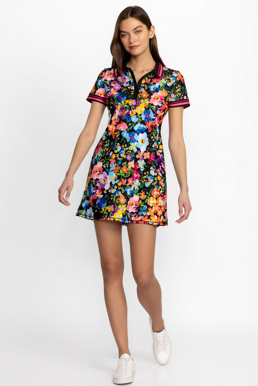 Whether on the courts or at brunch, the Wild Bloom Active Polo Tennis Dress offers a feminine silhouette in a classic sportswear style. Crafted from a polyester blend with a generous amount of stretch, this dress features a collared V-neckline and shorts sleeves enhanced with a pattern of brilliant blooms. Pair with white sneakers and a cap for a day on the courts.