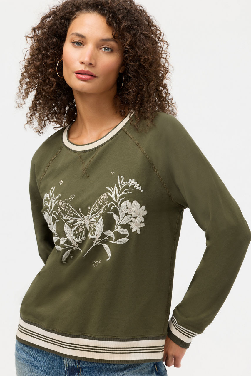 Crafted from a rich cotton blend with a hint of stretch, the Bee Active Raglan Crew Neck Sweatshirt features intricate embroidery. Designed with a crew neckline and relaxed Raglan sleeves, this cozy pullover reminds you to seize the day. Pair with relaxed-fit denim and fashion sneakers for a casual weekend ensemble.